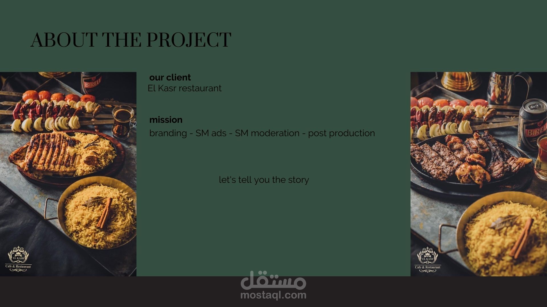 المطلوب : تصوير و تصميم اعلانات لعمل حملة اعلانية علي مواقع التواصل الاجتماعي لمطعم القصر