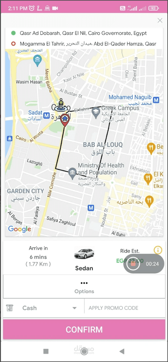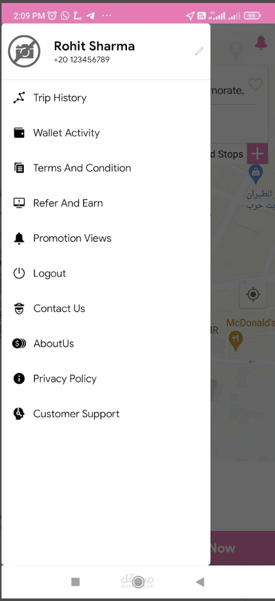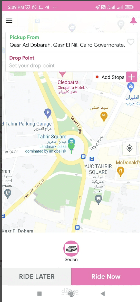 و تم الربط ب Google maps API لتحديد الوجهات و حساب الاسعار.