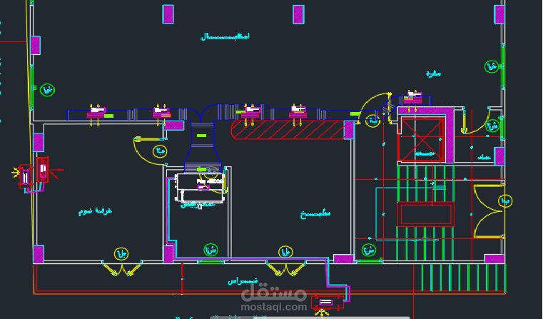 تصميم شبكة تكييف مركزى من المكن الكونسيلد وشبكة الدكتات والجريلات مع حسابات الأحمال الحرارية وكمية الهواء اللازم لكل حيز