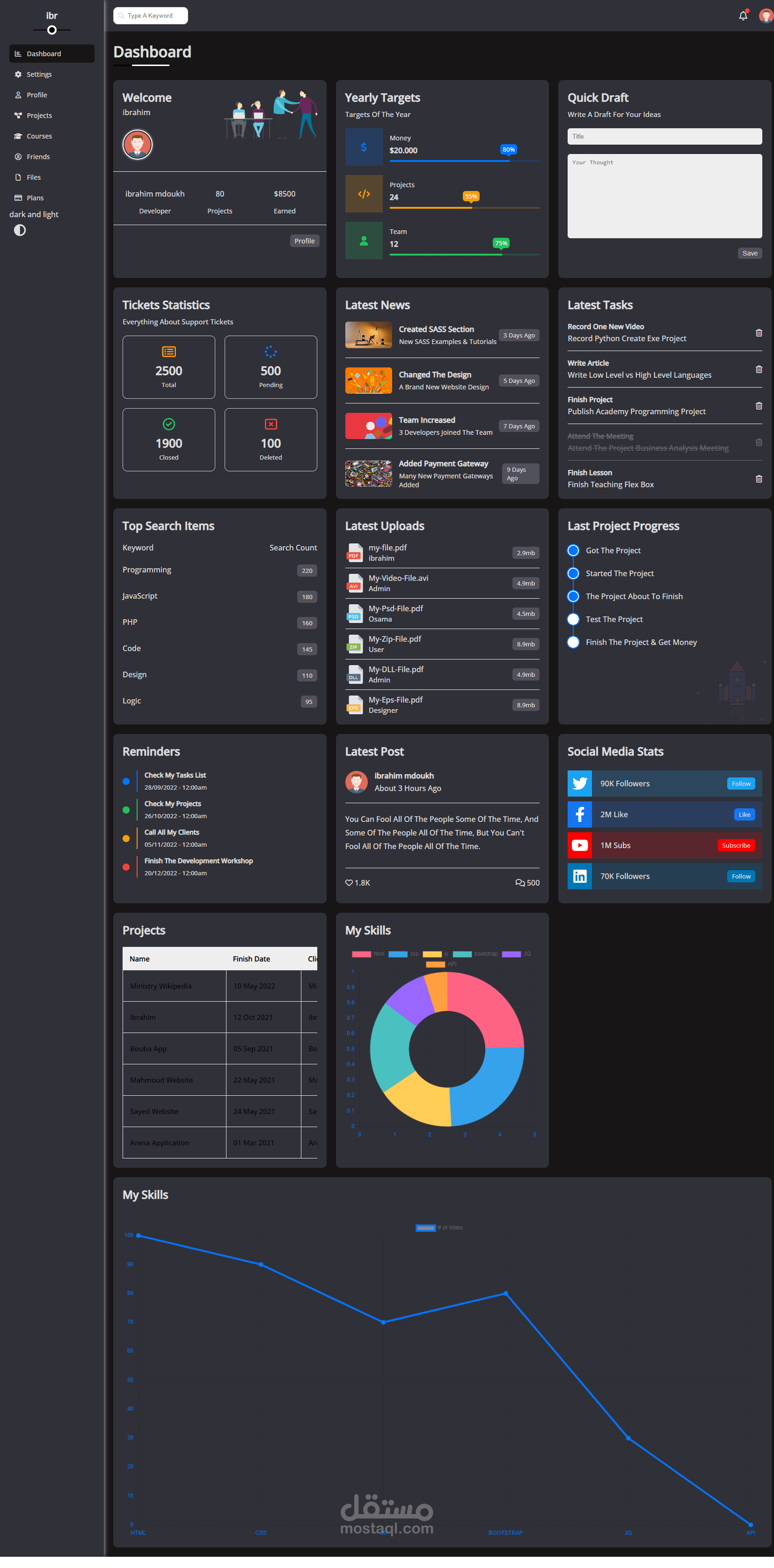 Dahboardتتميز يتصميم عصري و مميز ويحتوي على العديد من الحركات التفاعلية مع المستخدم