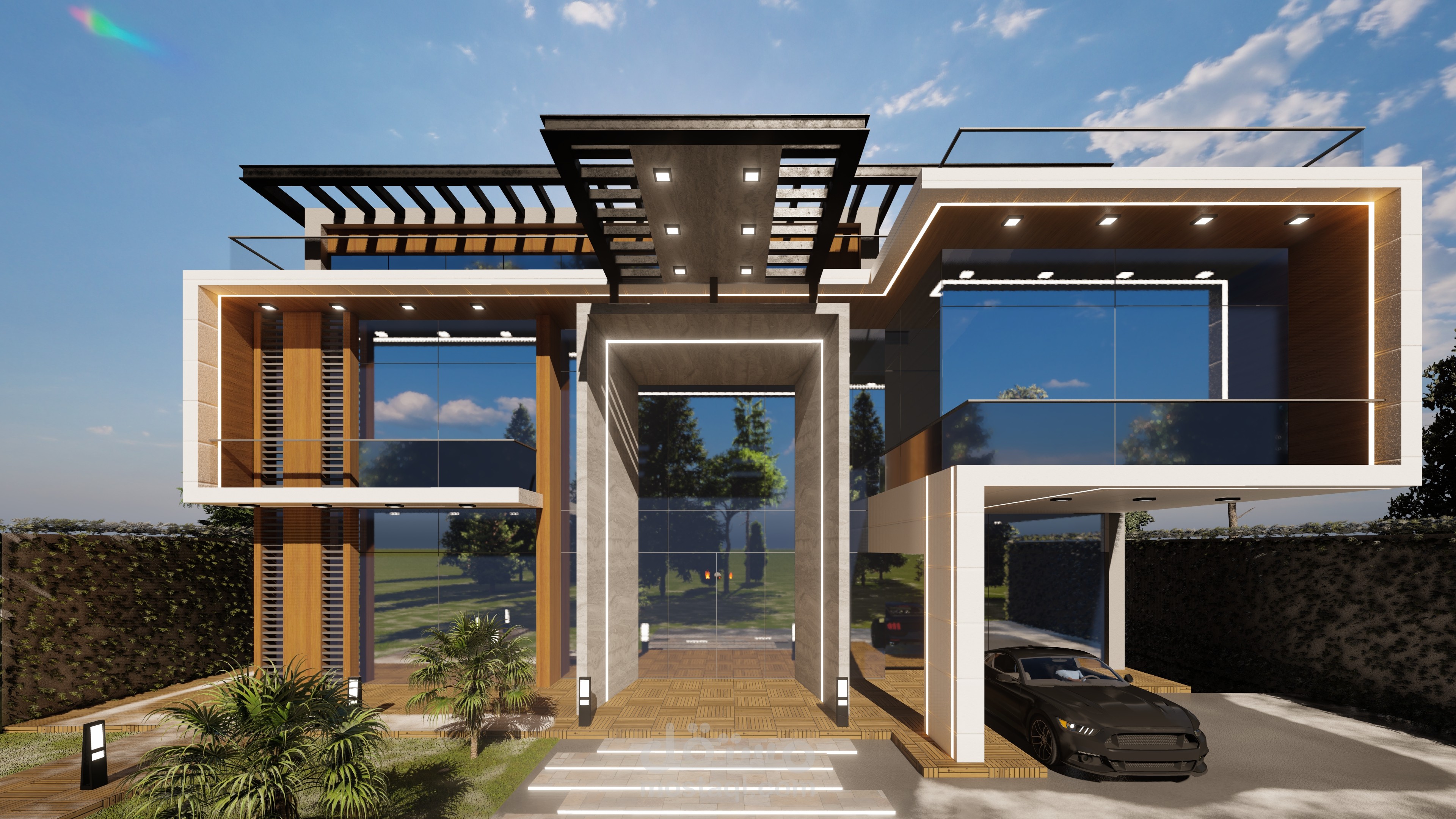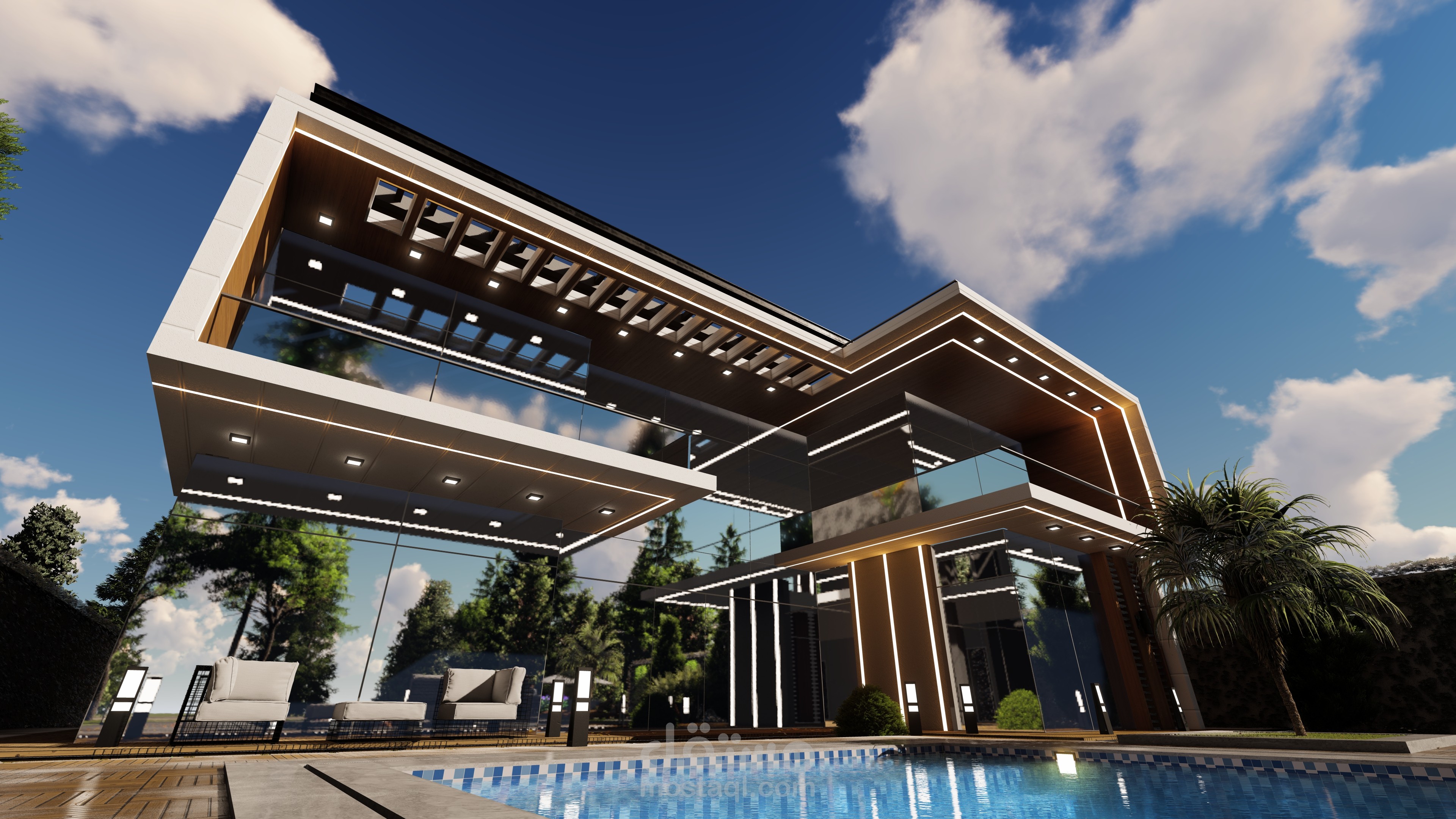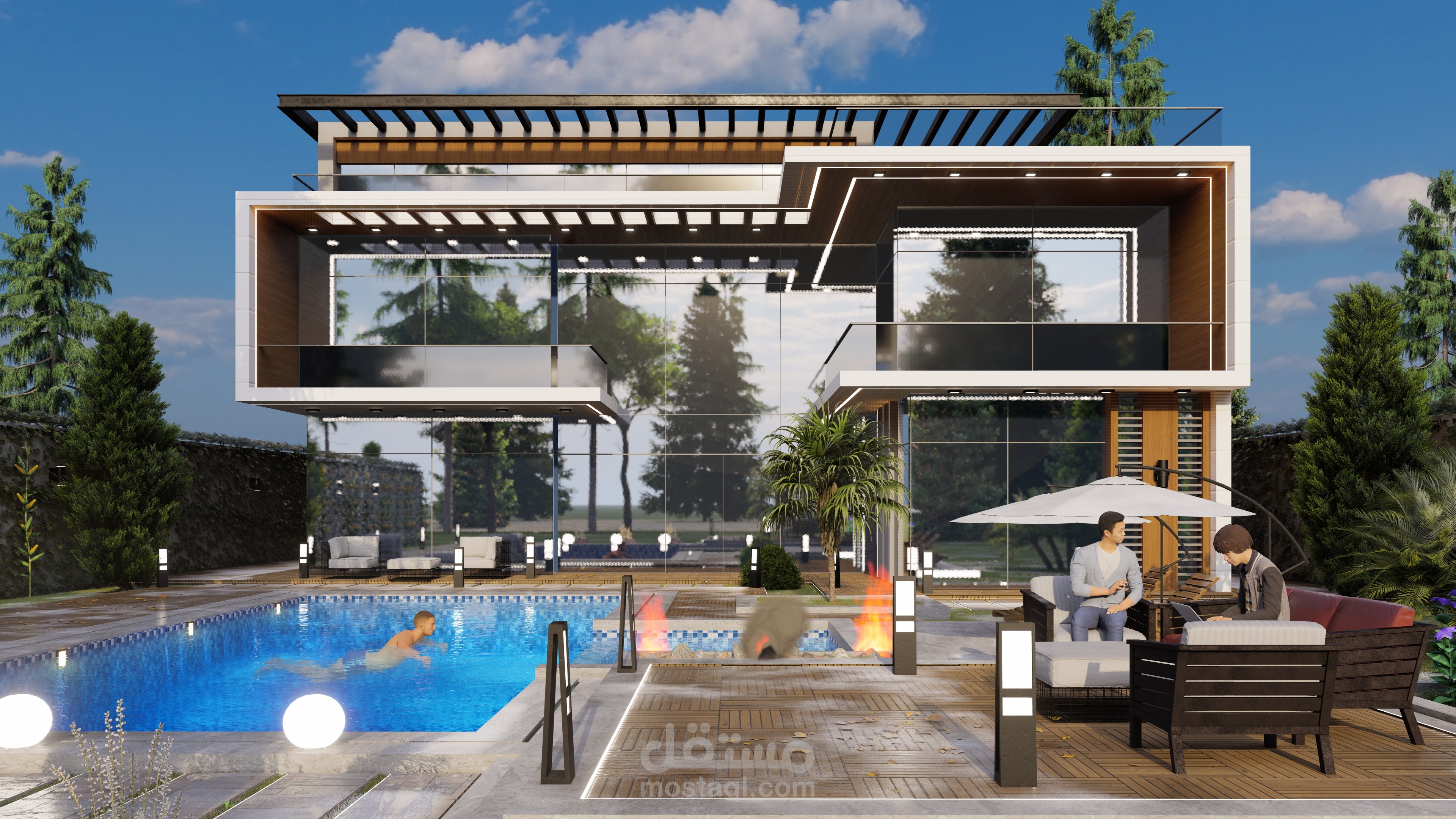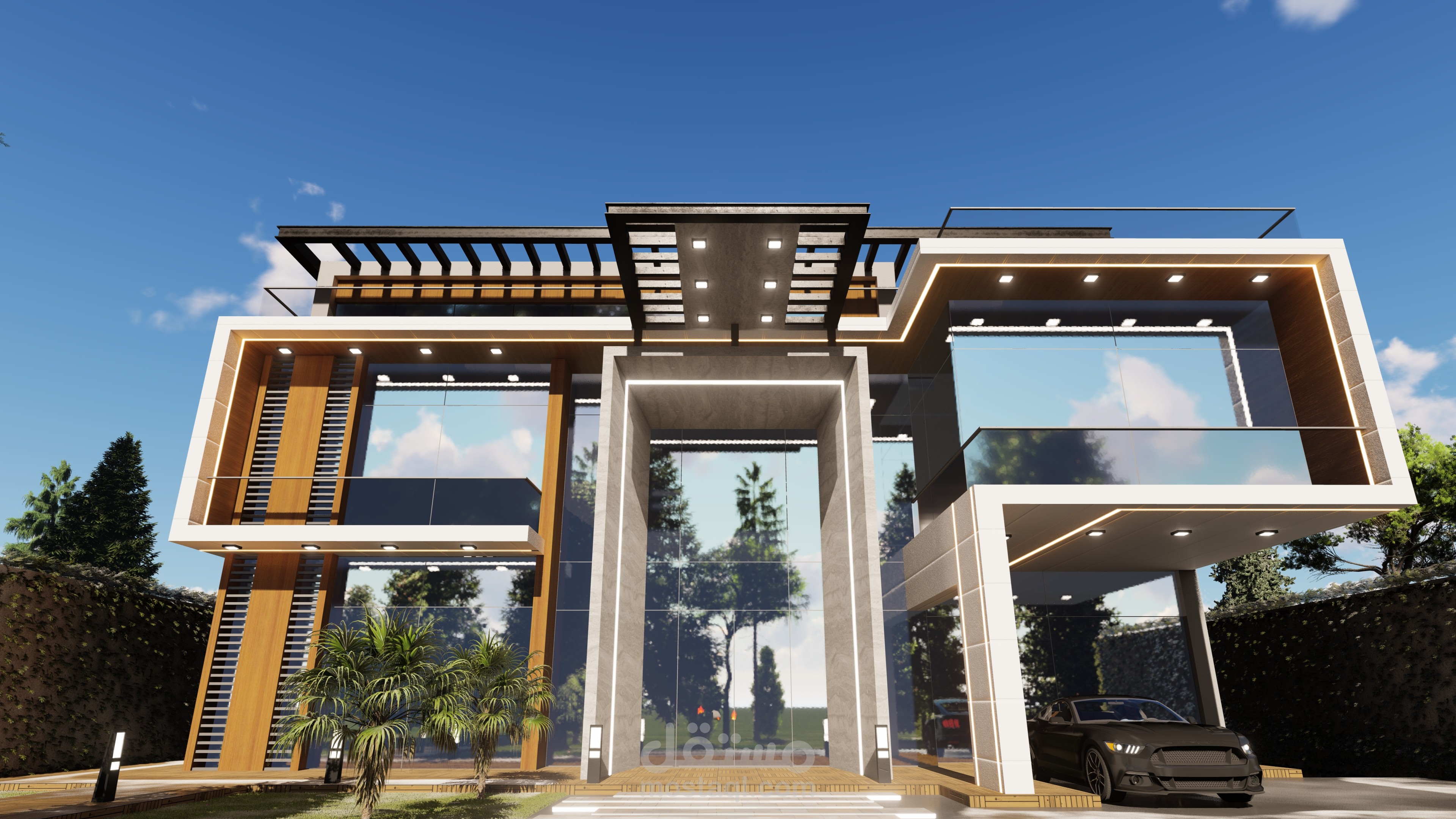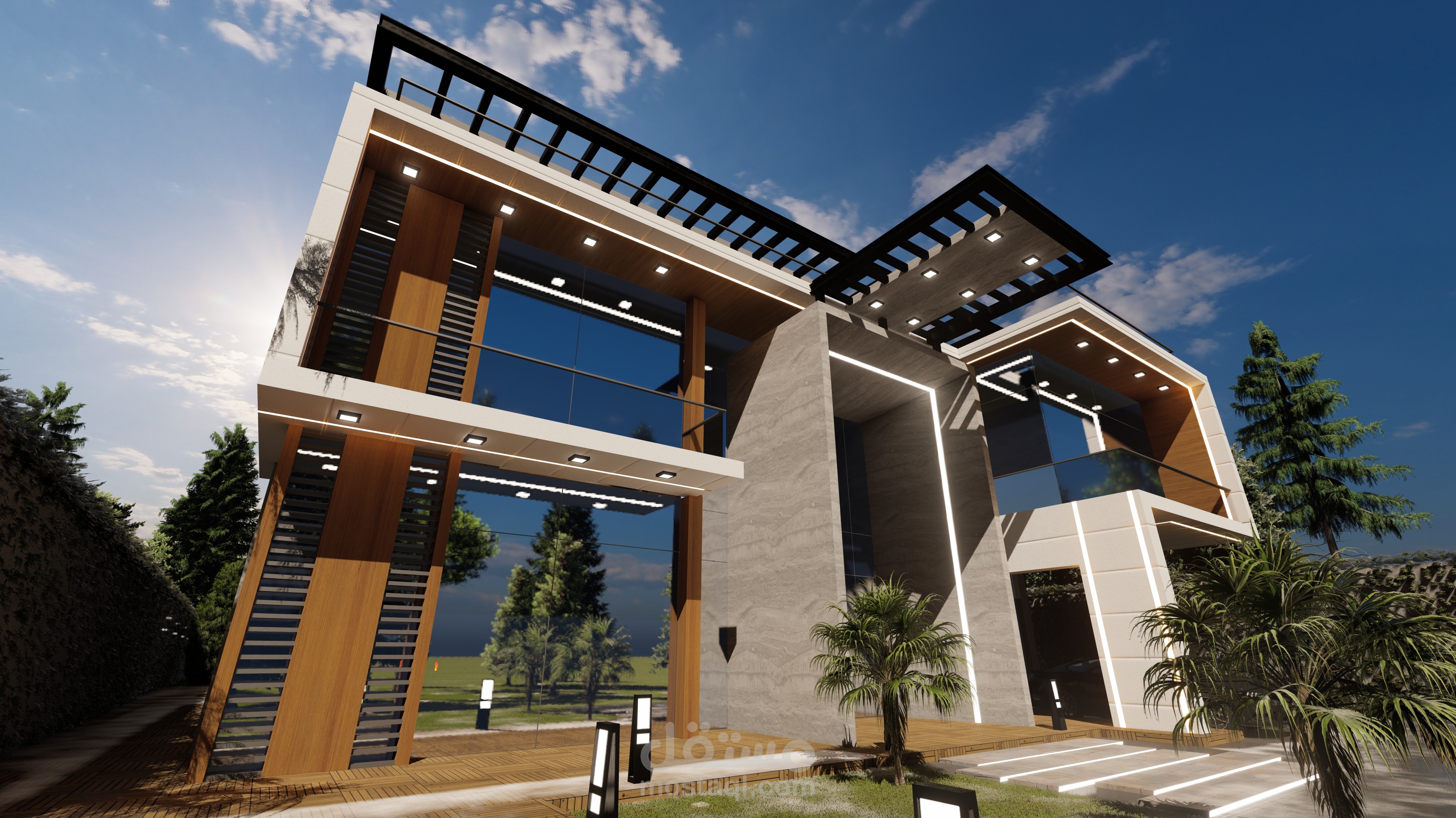 تصميم خارجي و تنسيق موقع عام لفيلا صلاح الراشد palm jumerah دبي الامارات