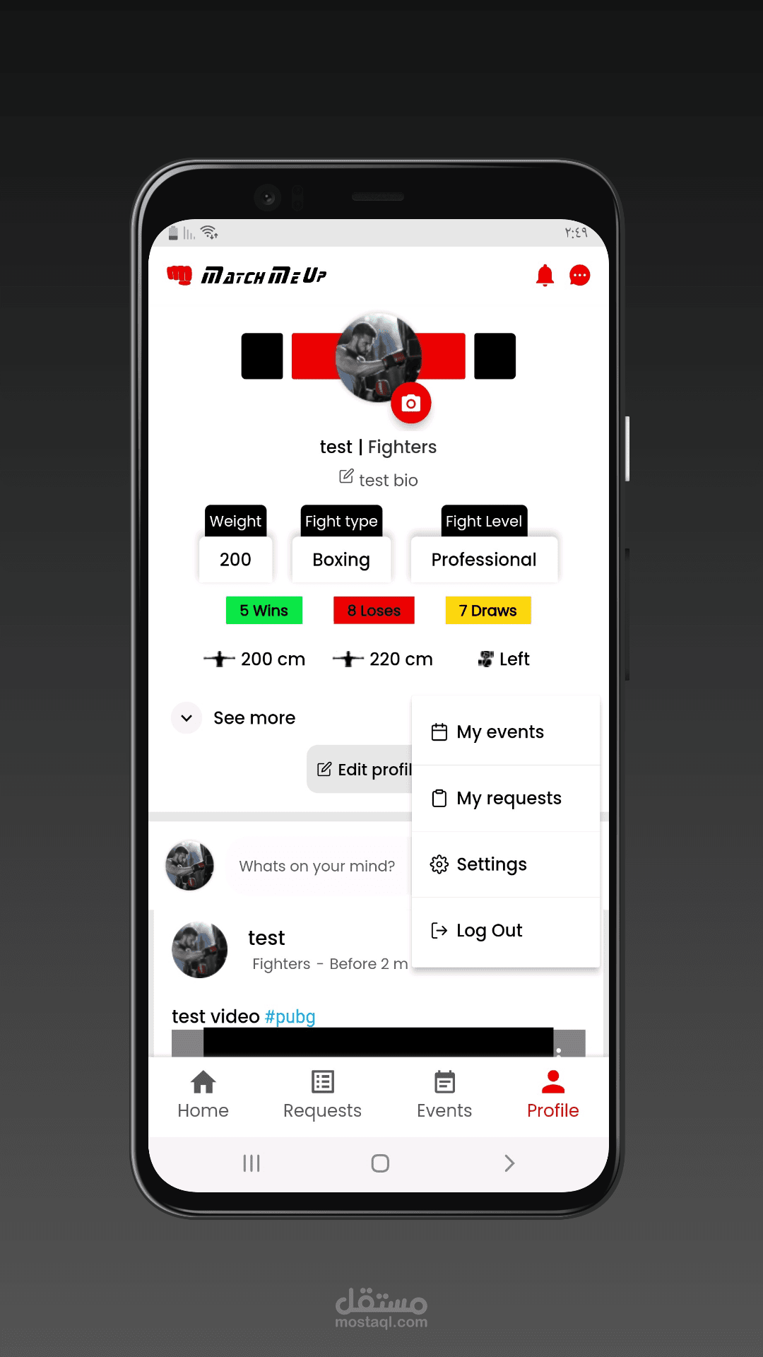 تطبيق اندرويد و ios , تم تطويره ب بيئة الفلاتر , يعمل التطبيق على ربط المقاتلين والملاكمين في بيئة تواصل اجتماعي تخصهم , يقوم التطبيق ب توفير بيئة اتصال بين جميع الملاكمين , بالاضافة لامكانية التقديم على حدث تم اضافته مسبقا من خلال ادارة التطبيق .