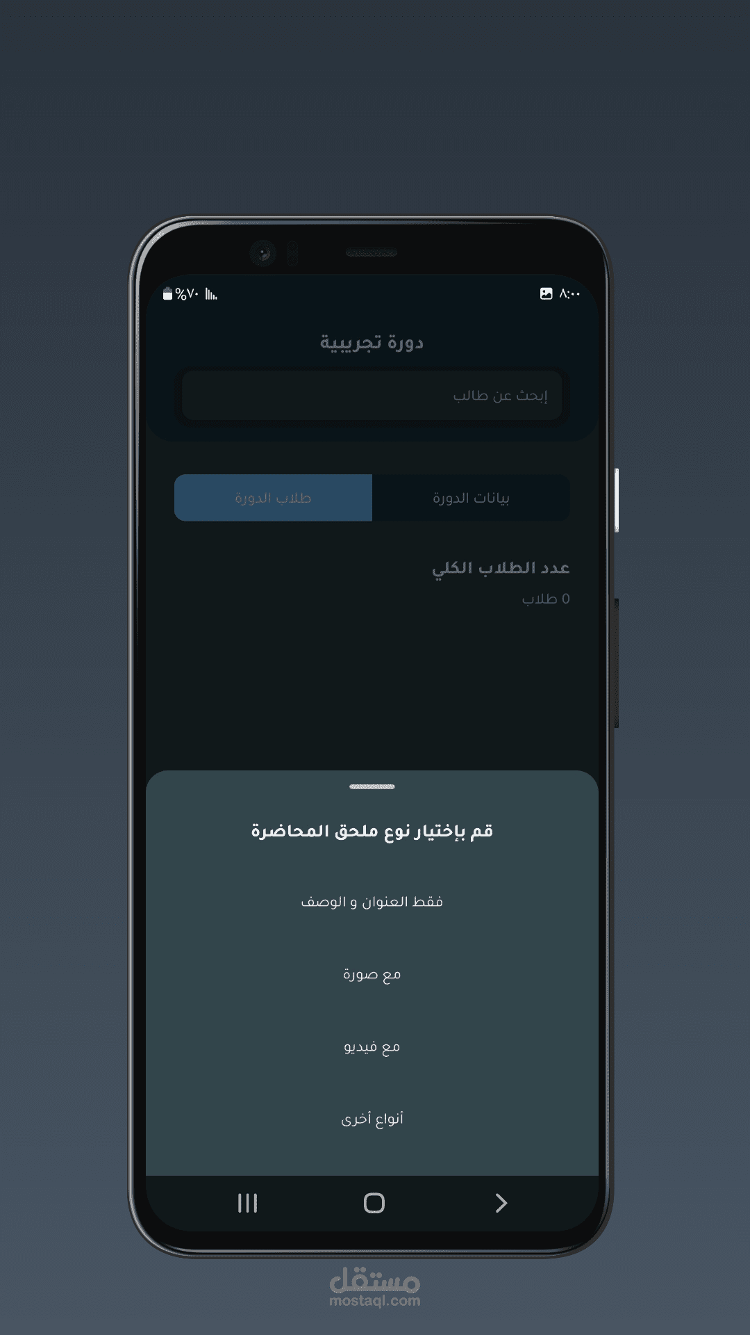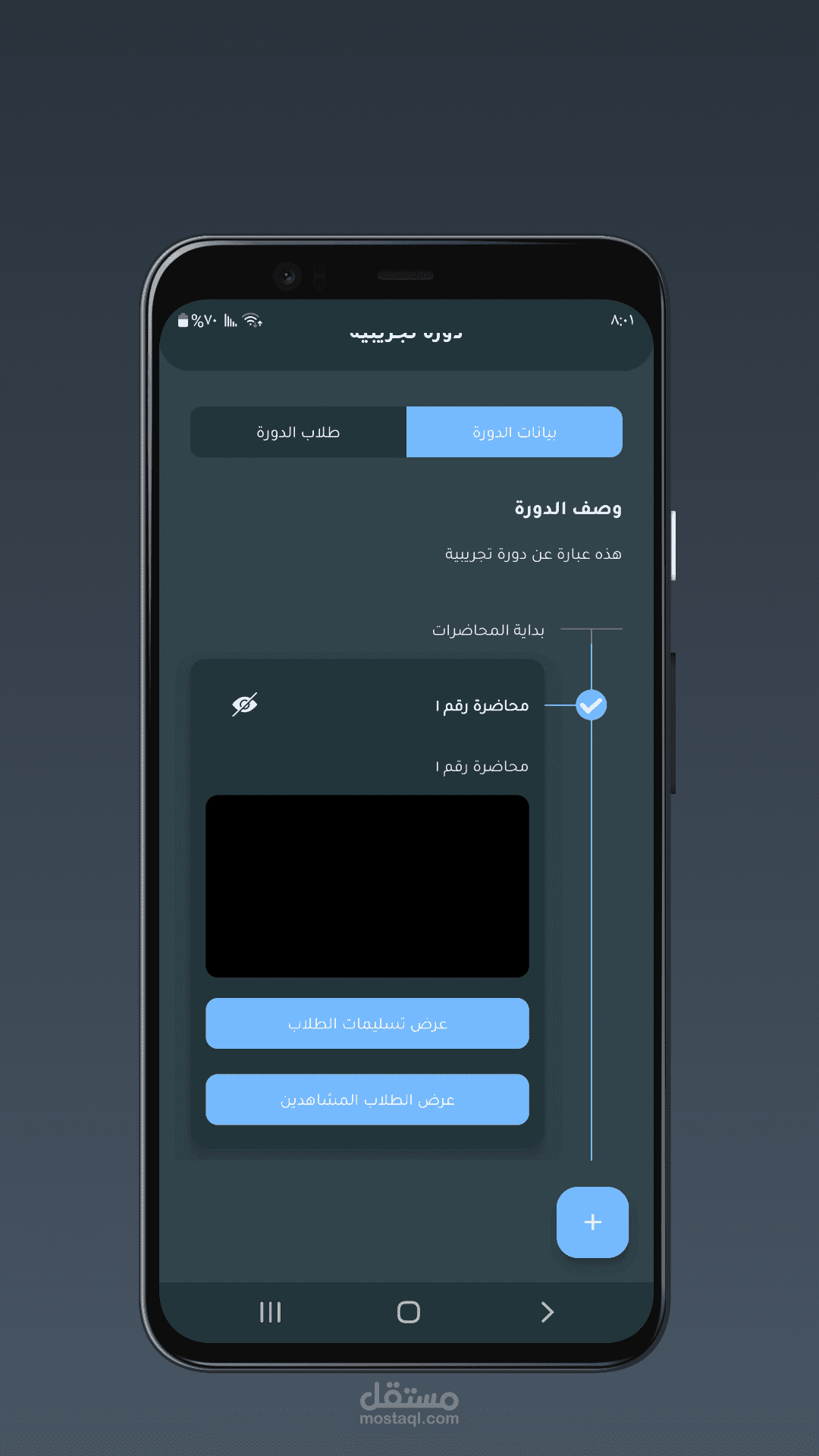 كما يسمح بتتبع تقدم الطالب داخل المقرر وعرض الإحصائيات الخاصة بكل مقرر.