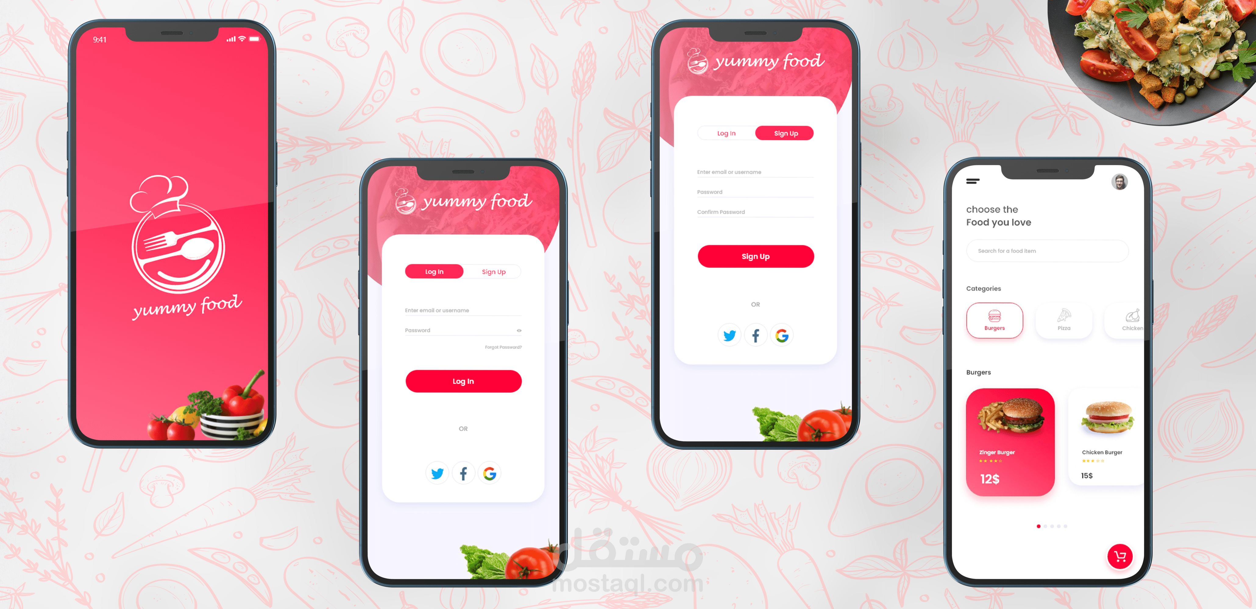 تصميم واجهة المستخدم لمطعم وجبات سريعة