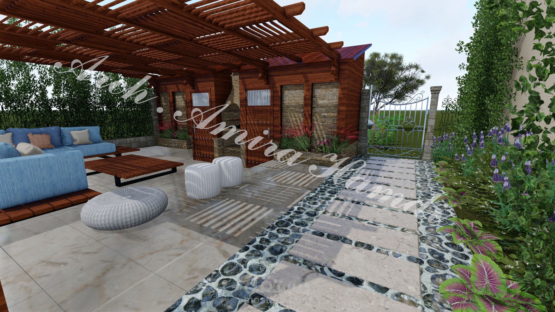 منظور خارجى لاعمال اللاندسكاب لفيلا واستغلال الحيز المفتوح لعمل مكان للحفلات الشوى .