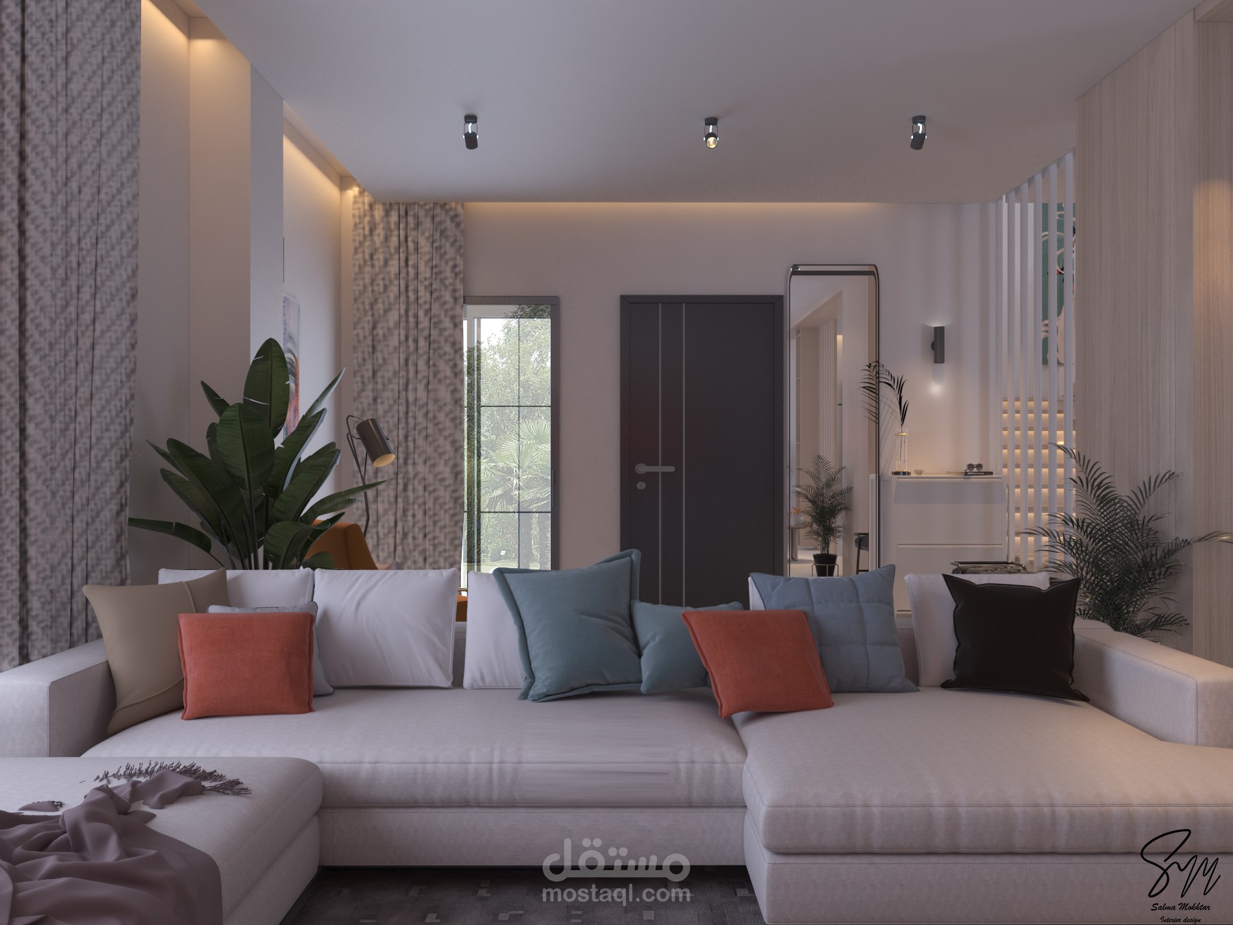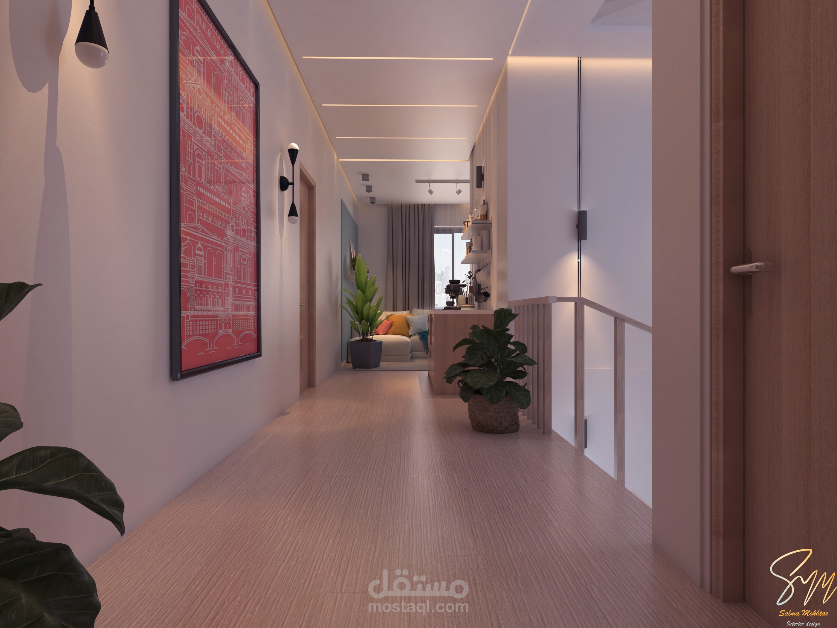 Duplex apartment with reception on the first floor and the second floor with bedrooms and a coffee corner