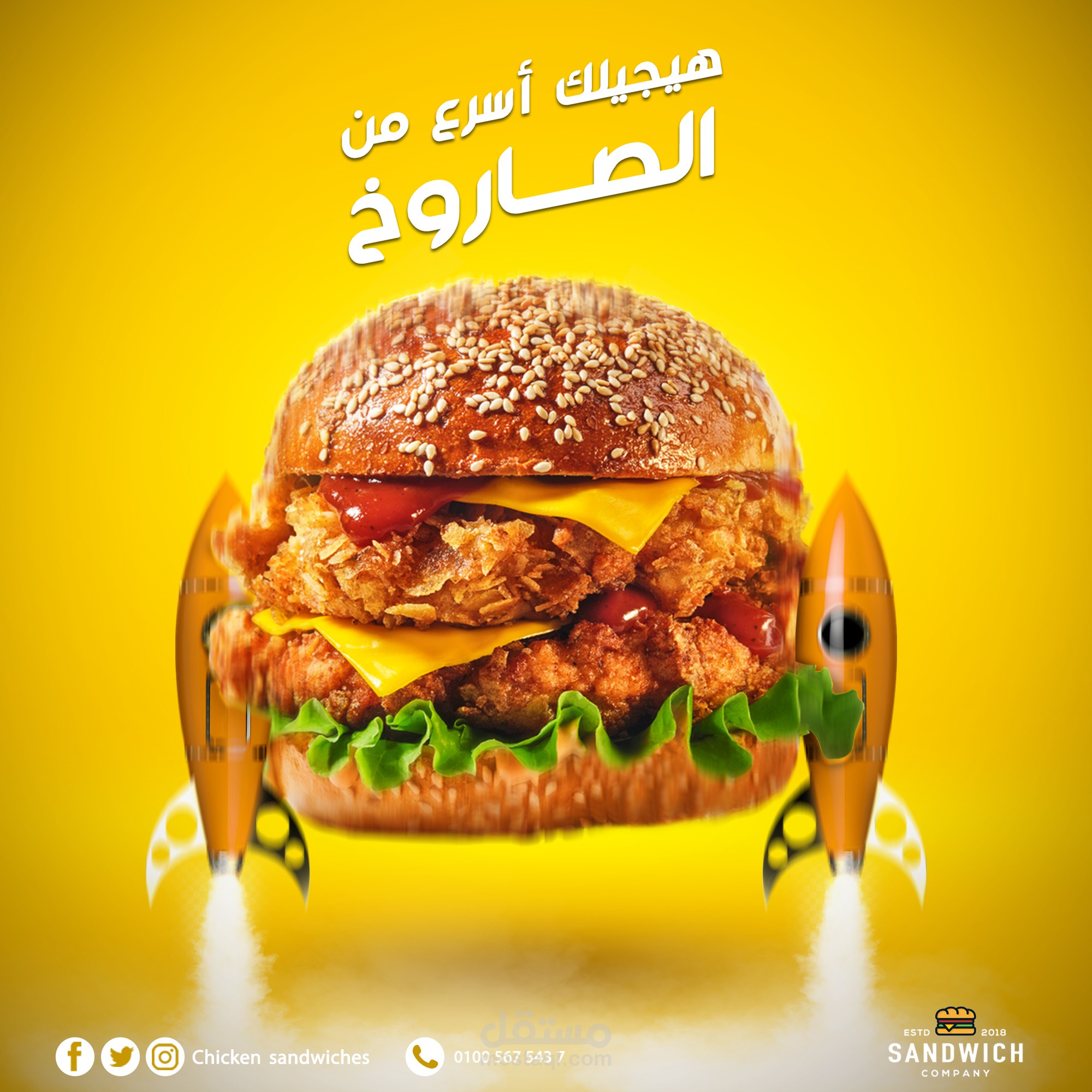 I photographed some famous sandwiches about burgers and chicken and worked on them in different and creative designs in order to draw the attention of customers on social networking sites
