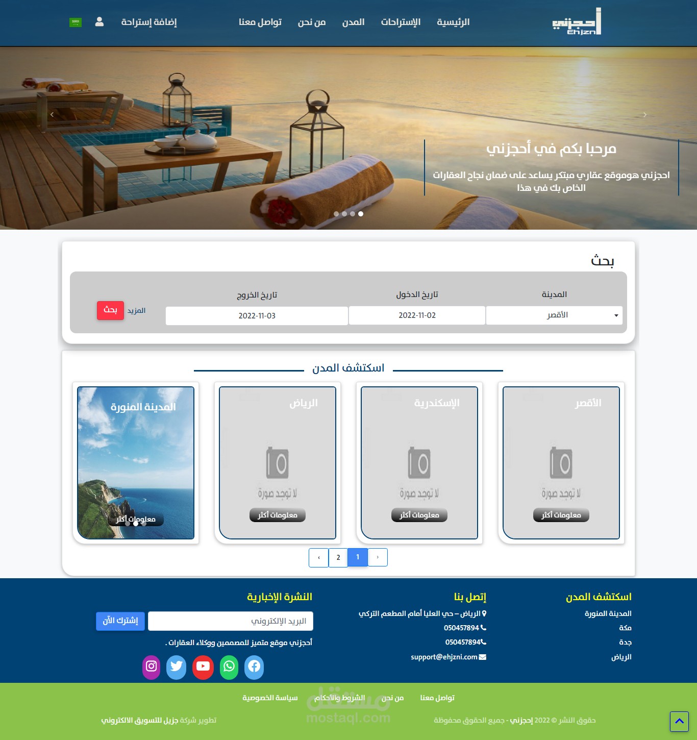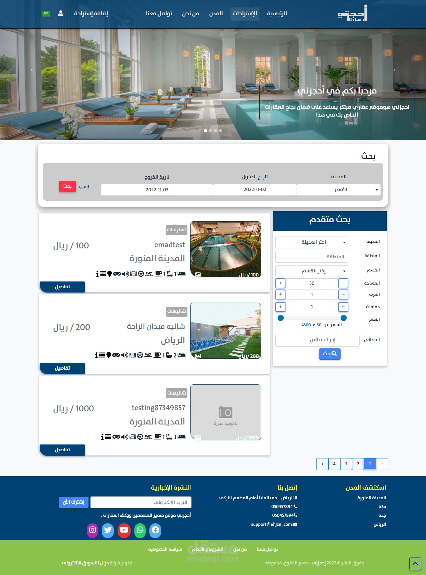 موقع لحجز وإستئجار الإستراحات والشاليهات والشقق والعقارات