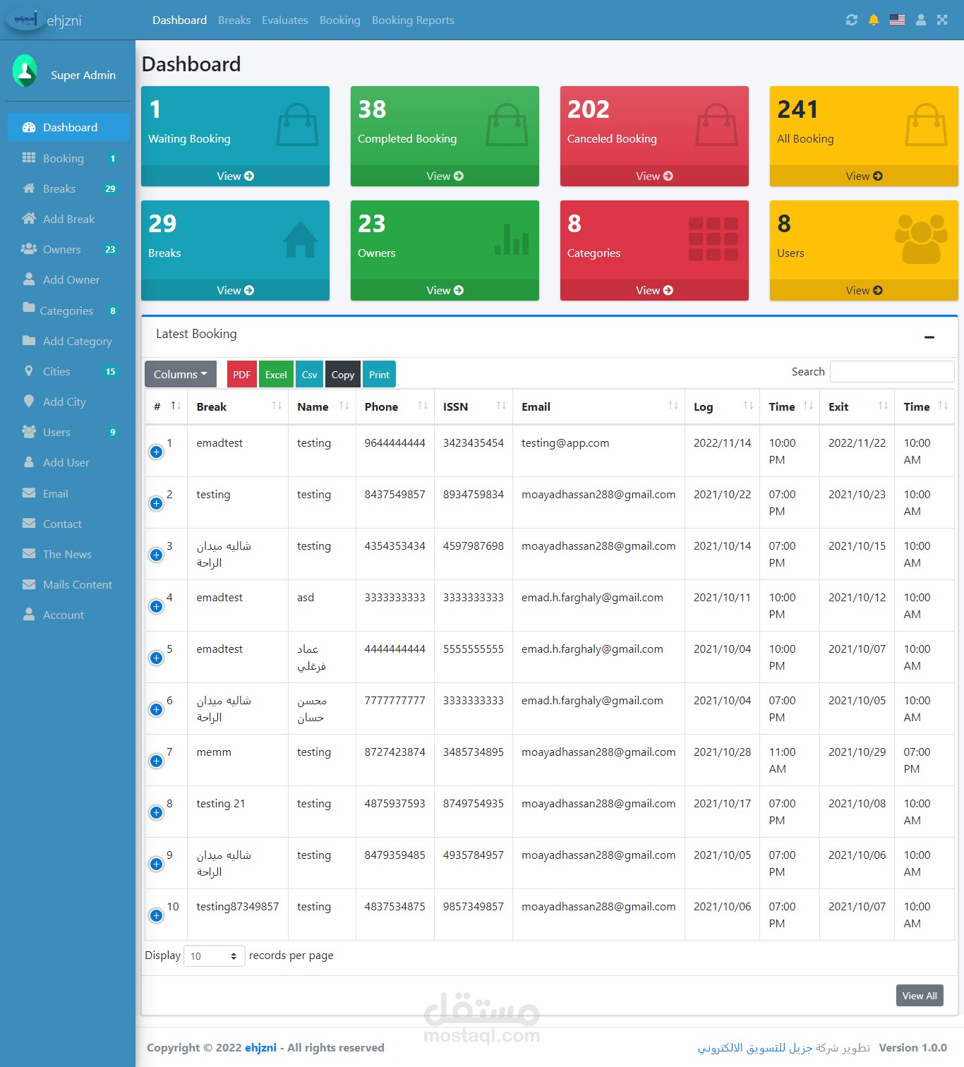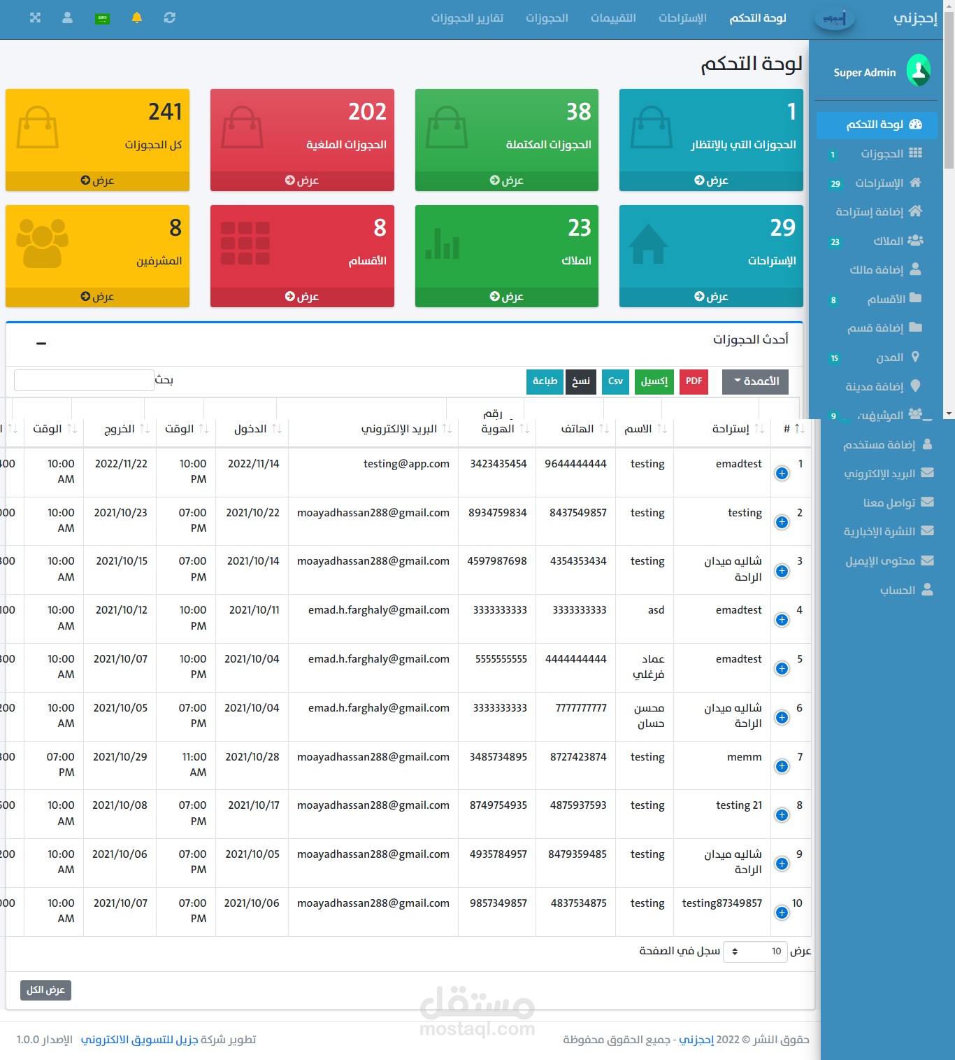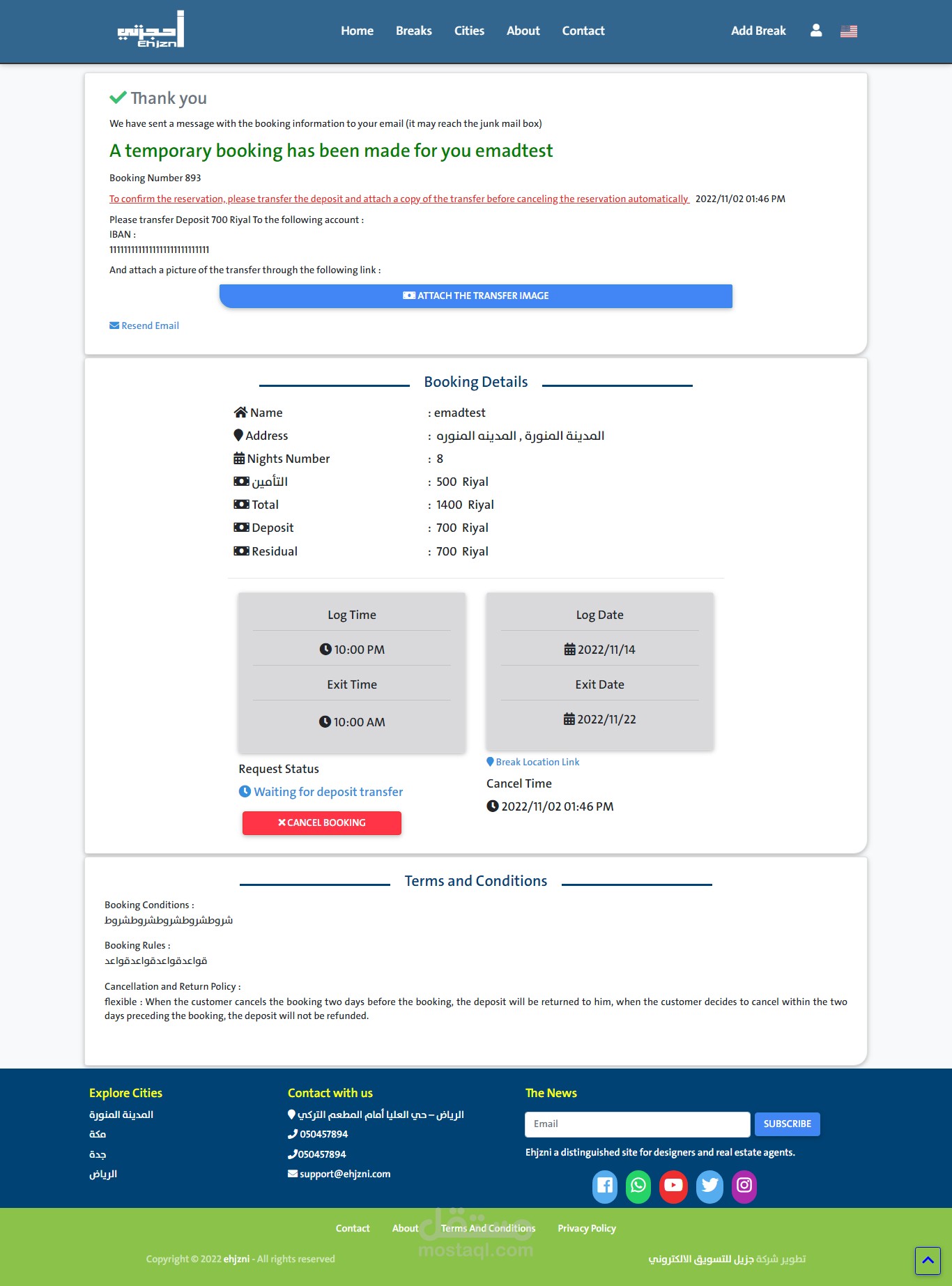 3. إشعارات البريد الخاصة بالحجز وتأكيد الحجز وإرسال إيصالات الدفع وإلغاء الحجز ( لكل من مالك العقار والعميل) .
