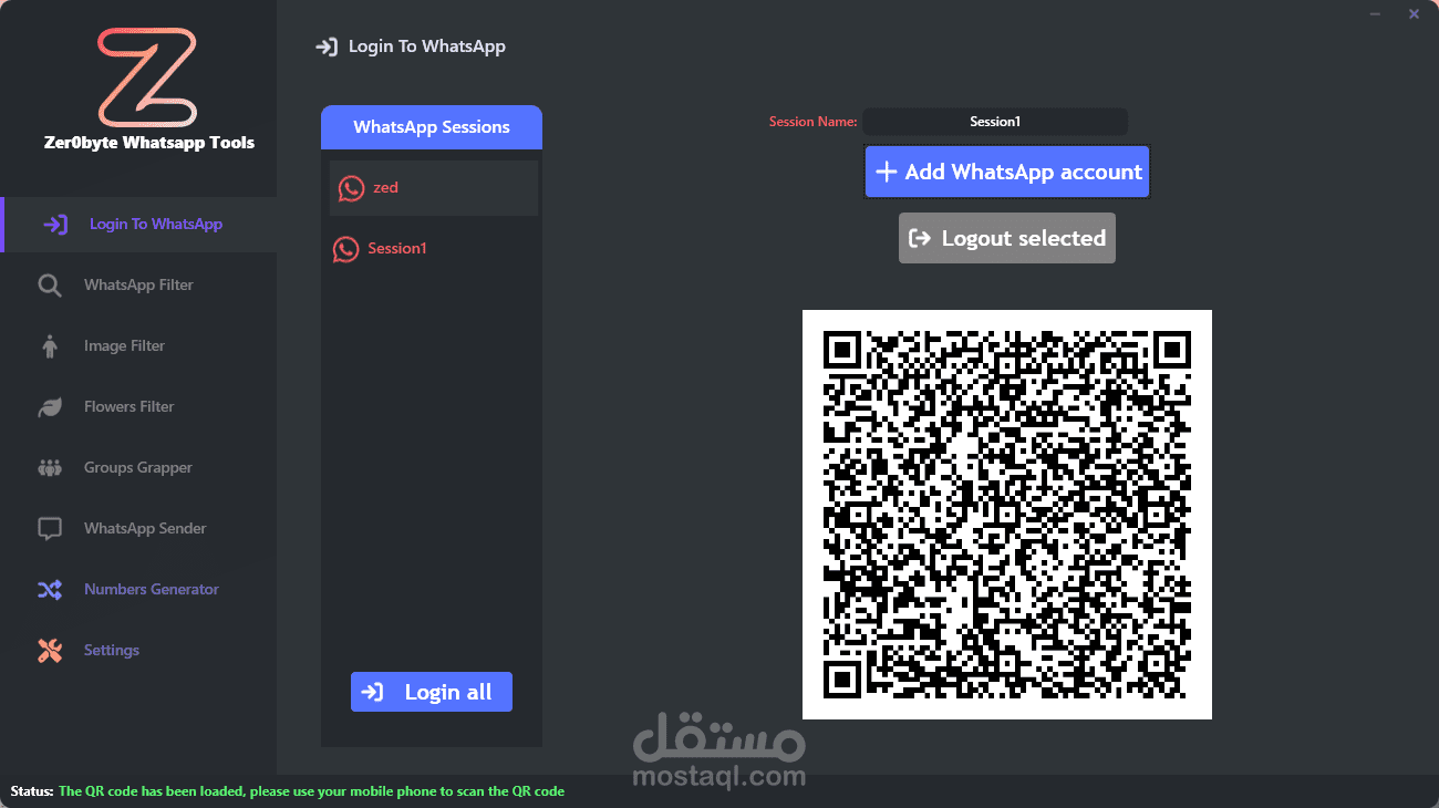 تسجيل الدخول إلى عدة أرقام WhatsApp (جلسات) لاستخدامهم في الارسال او التدقيق (الفلتره)