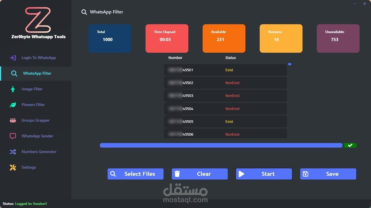 تدقيق (فلتره) أرقام الواتساب ما يقارب 20000 رقم كل 20 ثانية والحصول على تقرير بالارقام المسجله في واتساب والارقام الغير مسجله والارقام المسجله ك واتساب اعمال