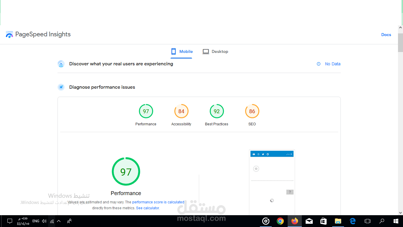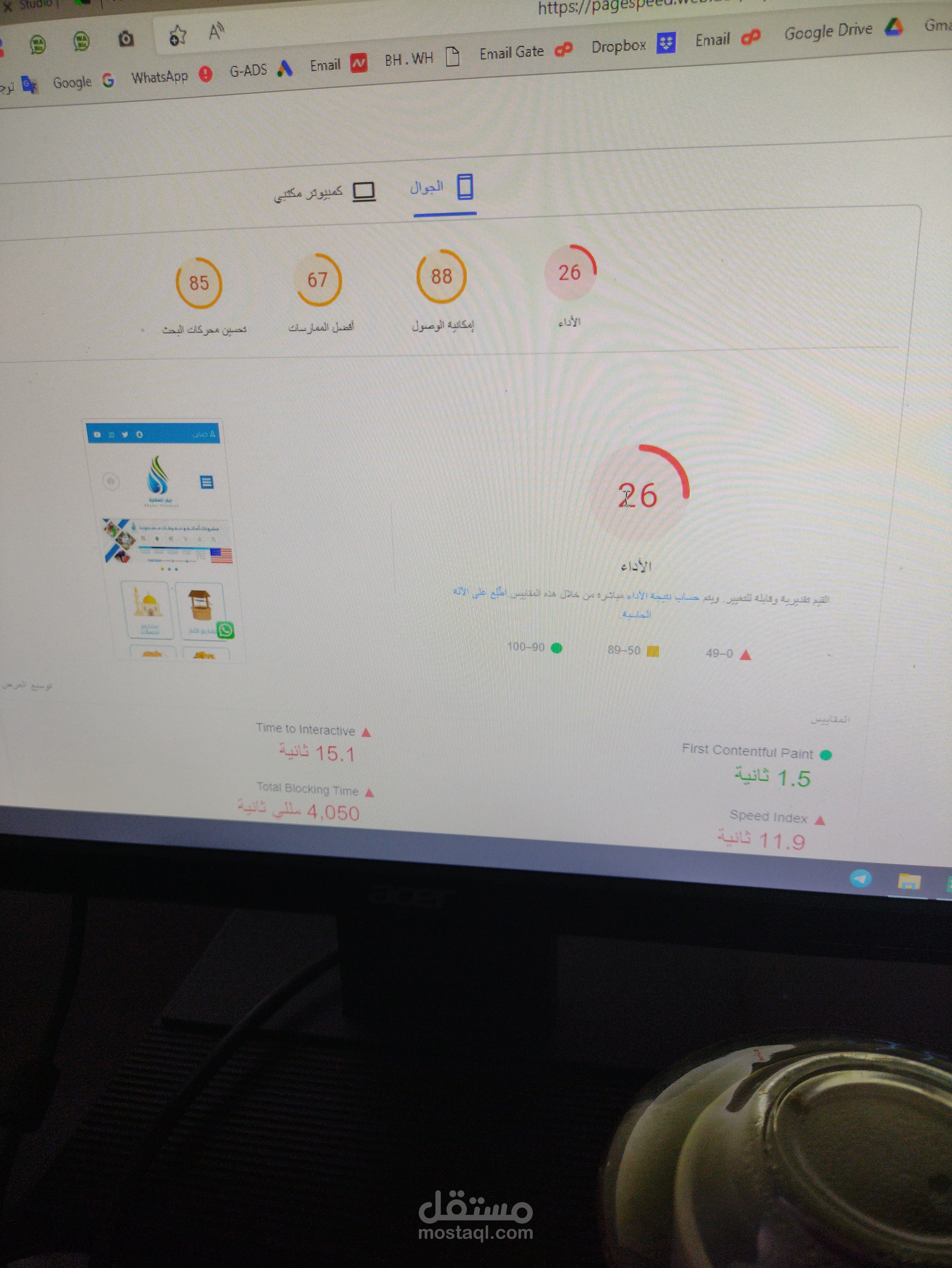 مثال لموقع اخر تم تسريعه من 12 الى ان اصبح 90على الموبايل