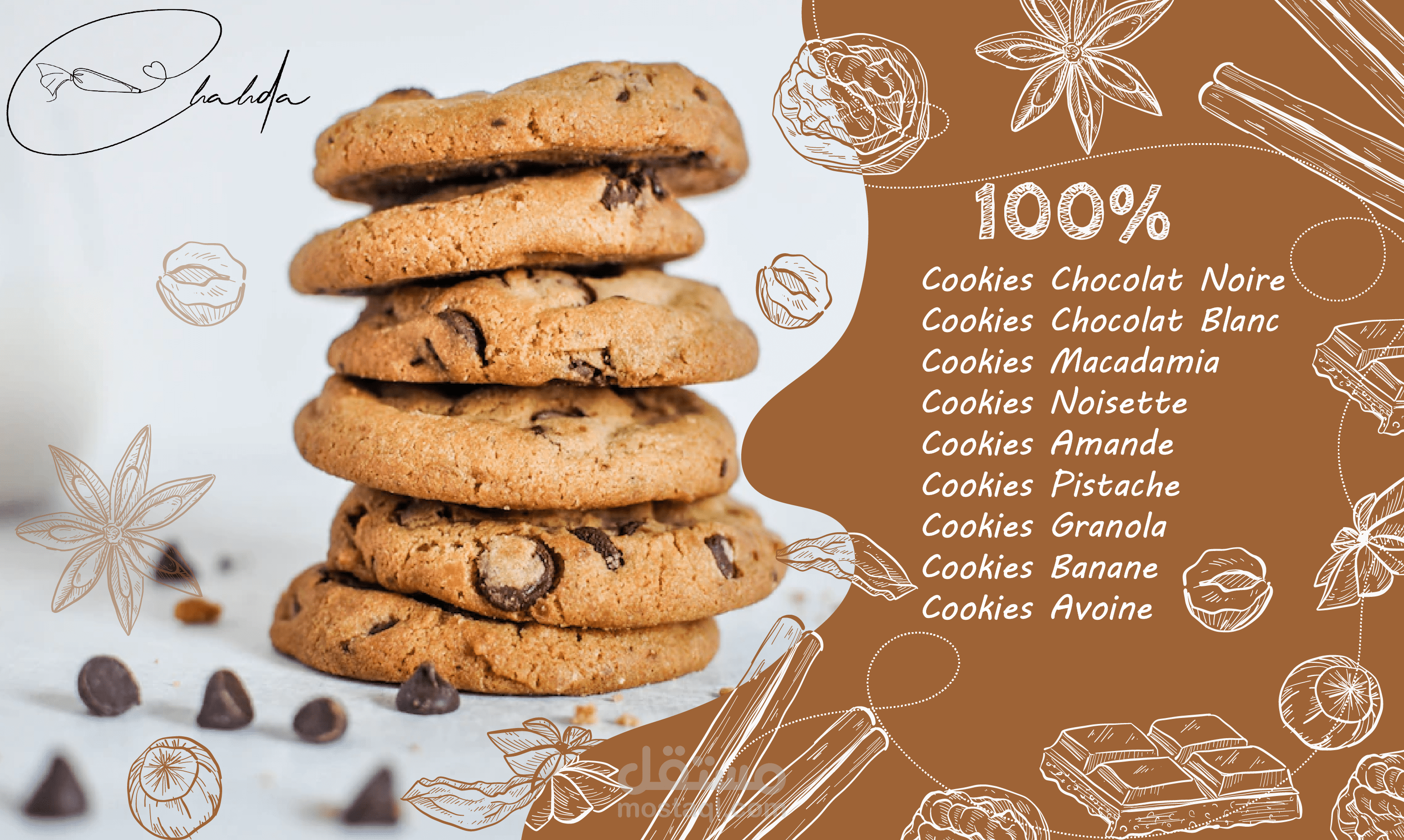 لوغو بسيط لمحل بيع الحلويات. المحل بإسم شهدا (Chahda)