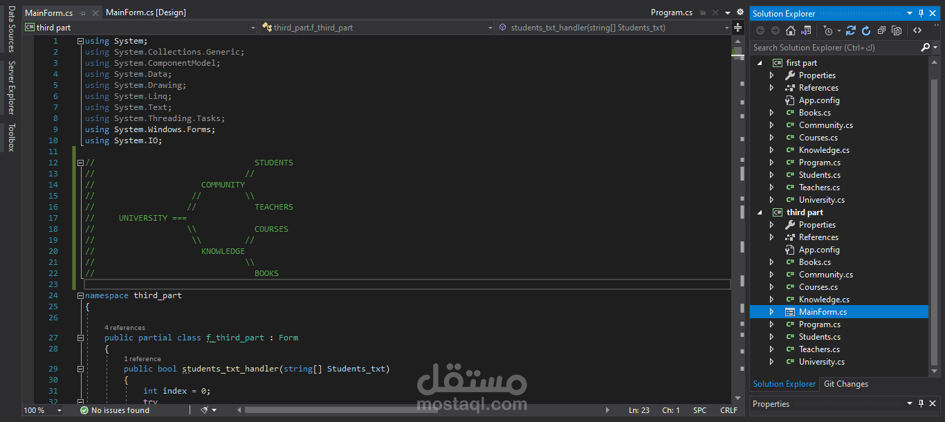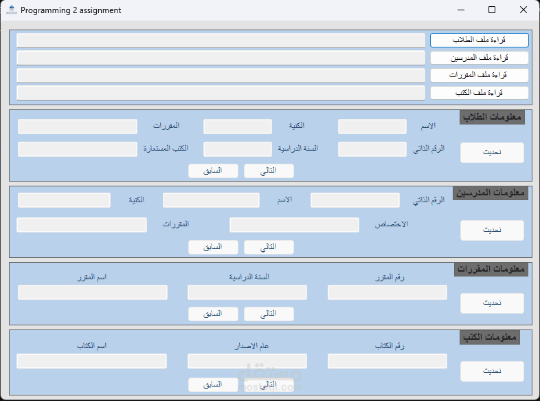 أرشفة معلومات الطلاب والمدرسين في الجامعة C# + Windows Forms App (.NET Framework).