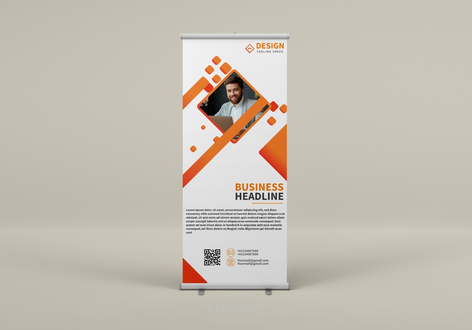هذا العمل اسمه رول اب ، وهو عبارة عن استاند ، وهو لوحة اعلانية ، وتم صنع هذا العمل على برنامج الاليستريتور ، وبأدق التفاصيل مع جودة الصورة العاليه .