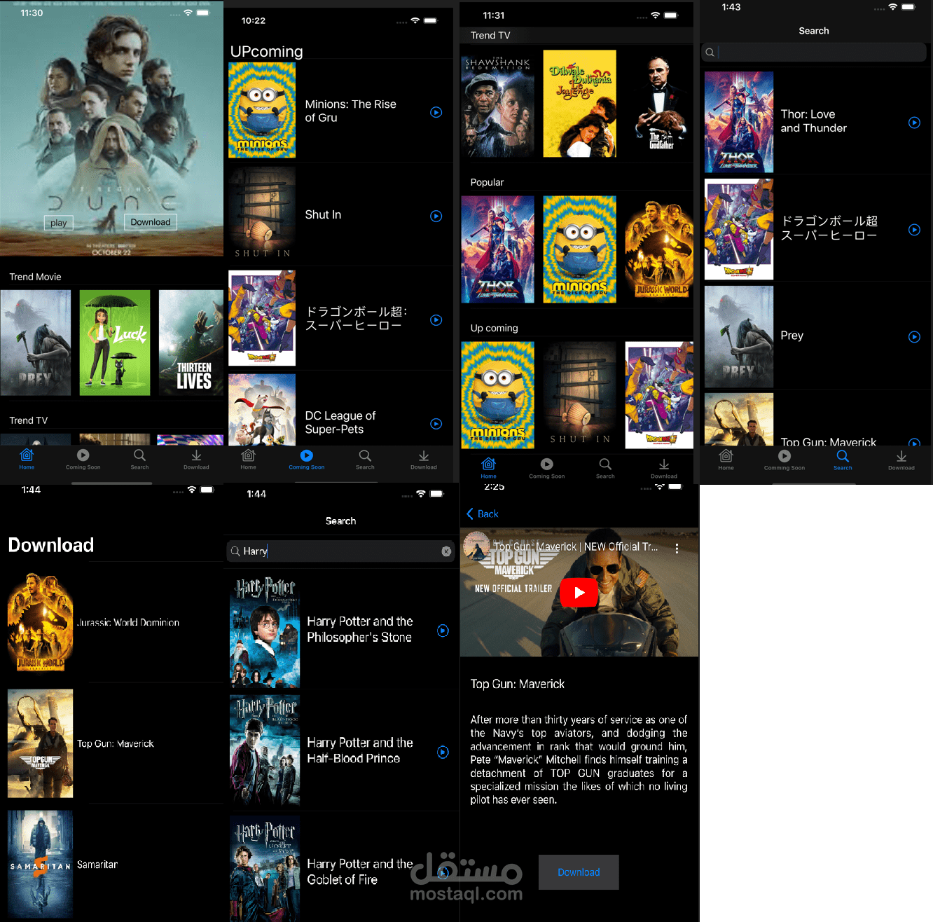 An application that shows you new movies, top-rated movies, popular series, and