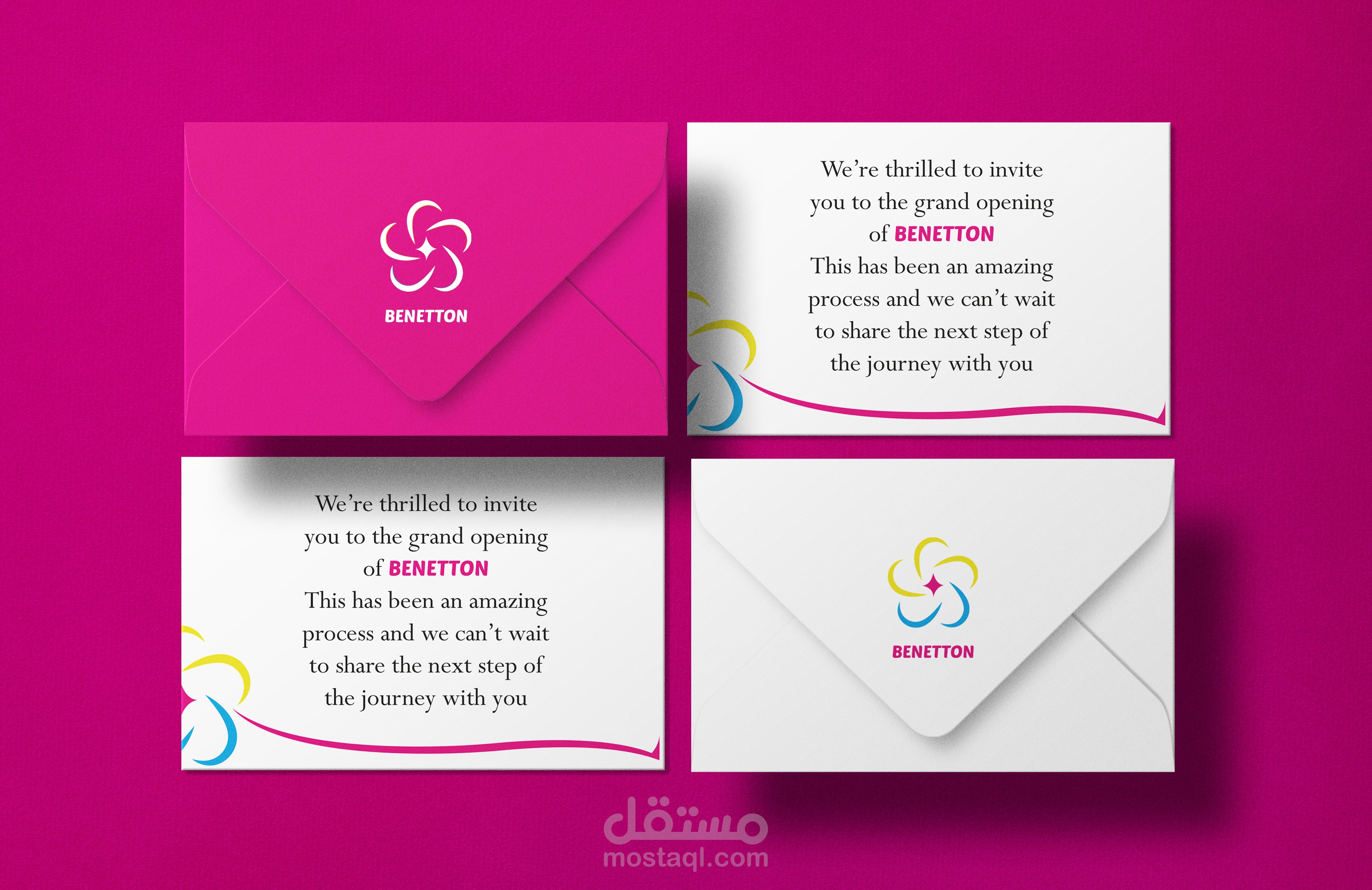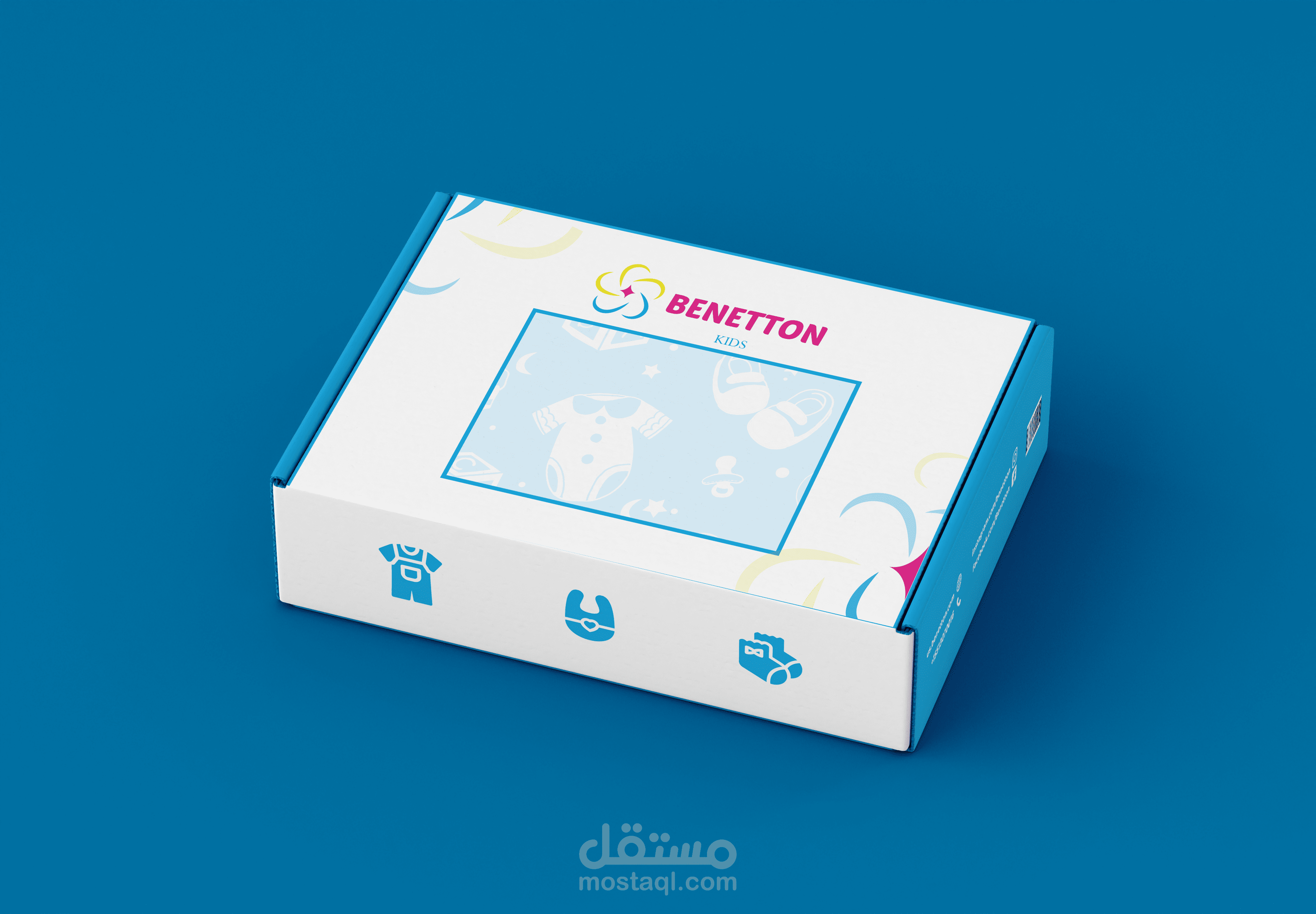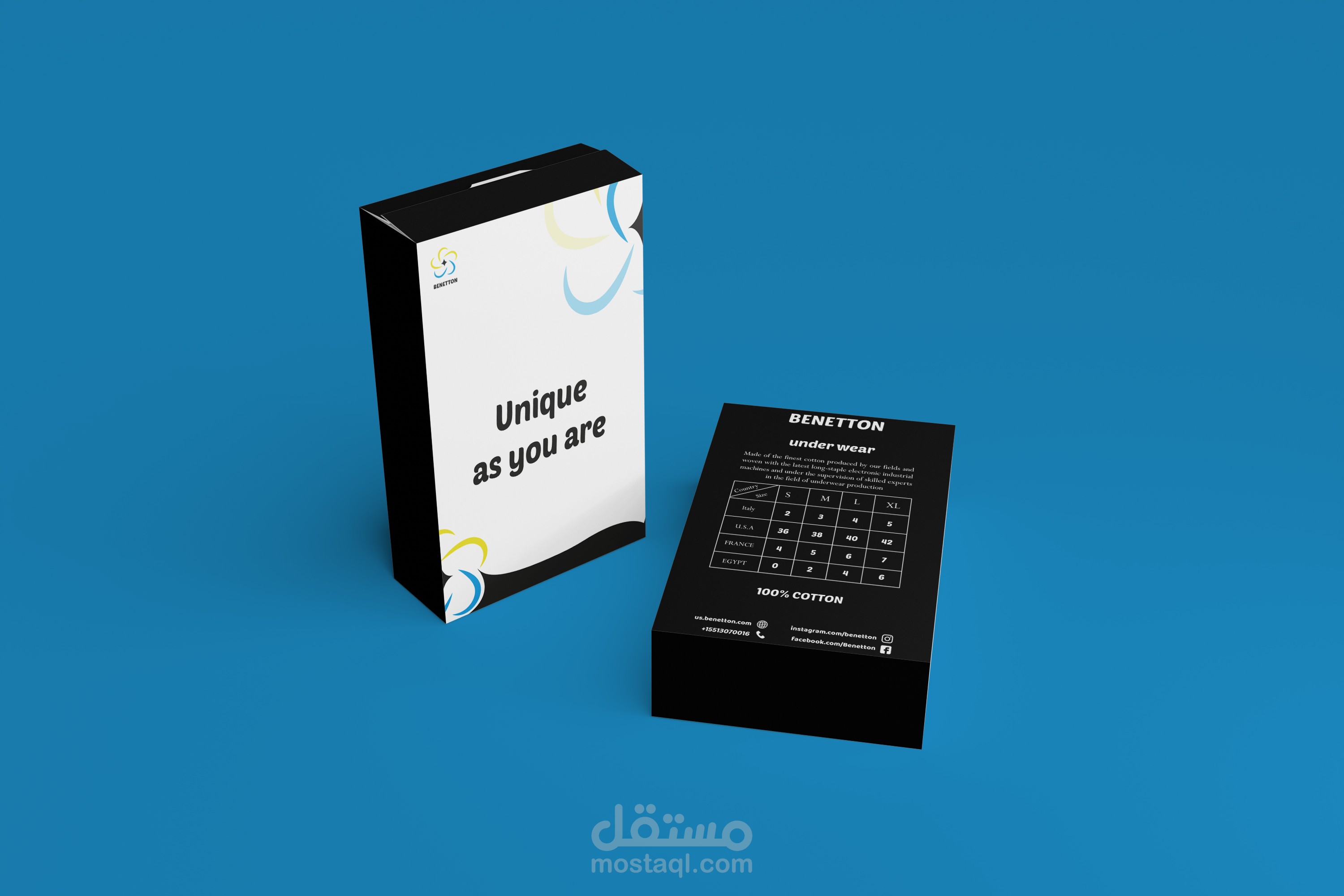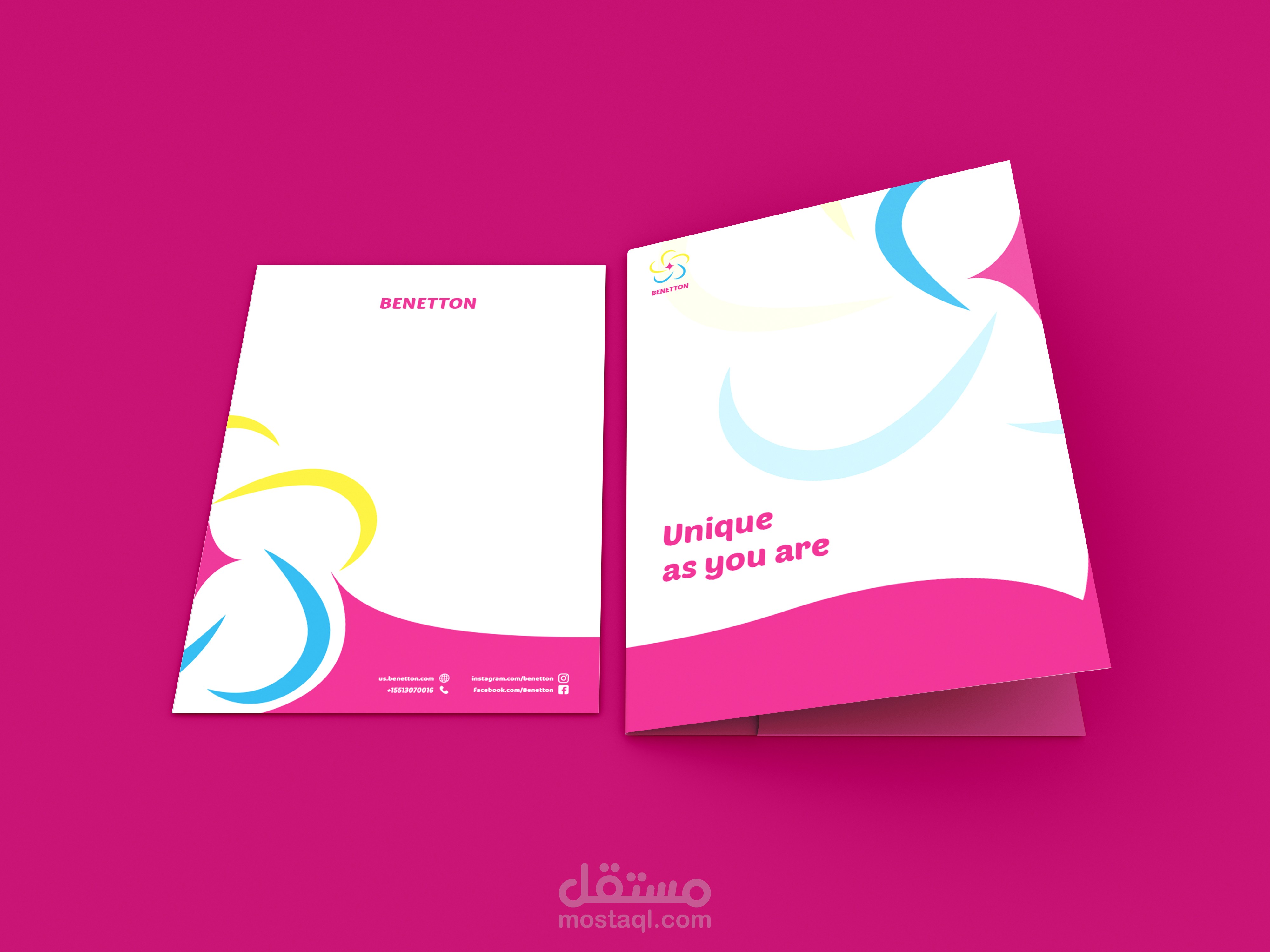 مشروع تصميم شعار و هوية بصرية و بوسترات دعائية و تغليف و تعبئة و مطبوعات ورقية لشركة بينيتون للملابس القطنية المتخصصة في تصنيع ملابس من القطن لجميع الاعمار من الجنسين.