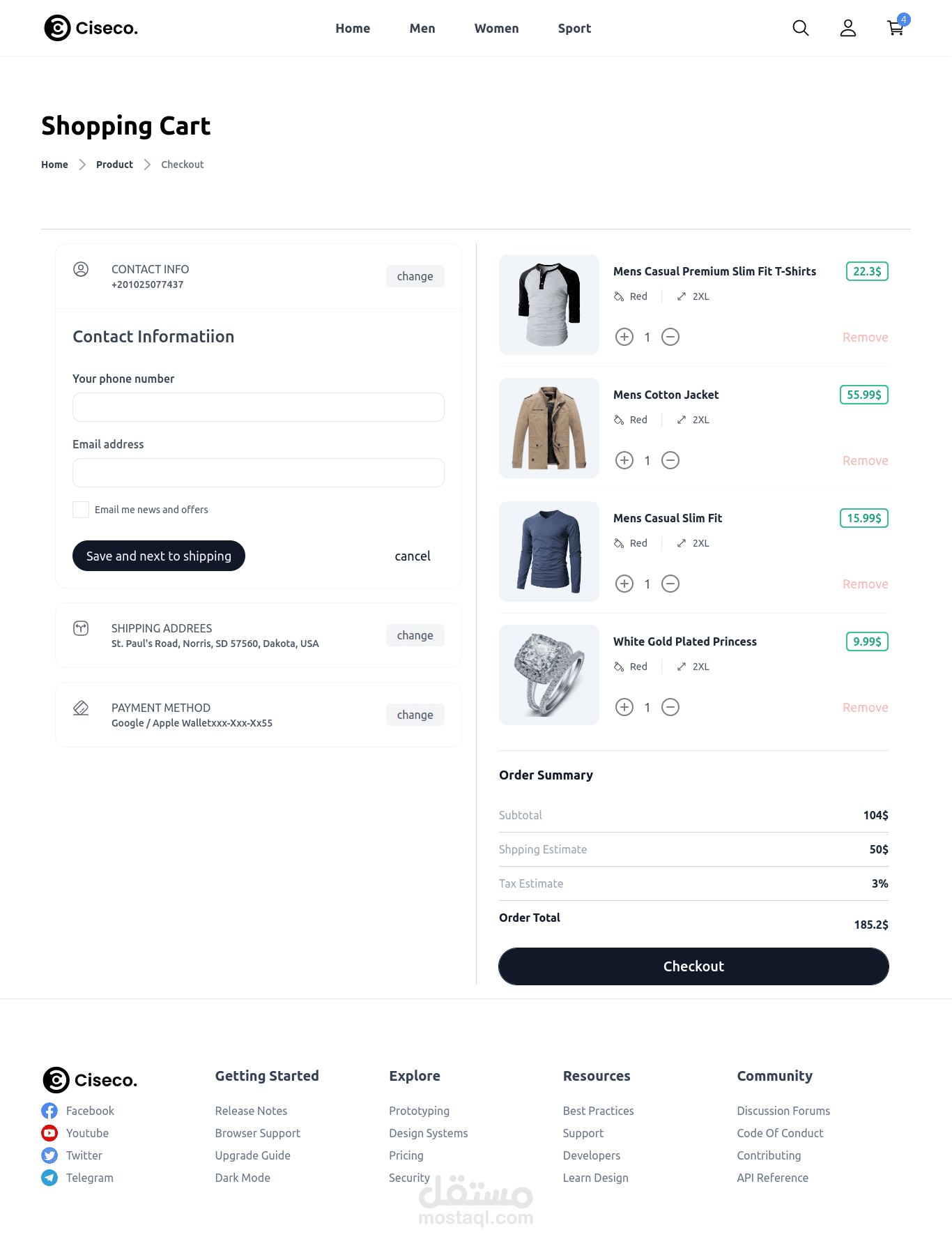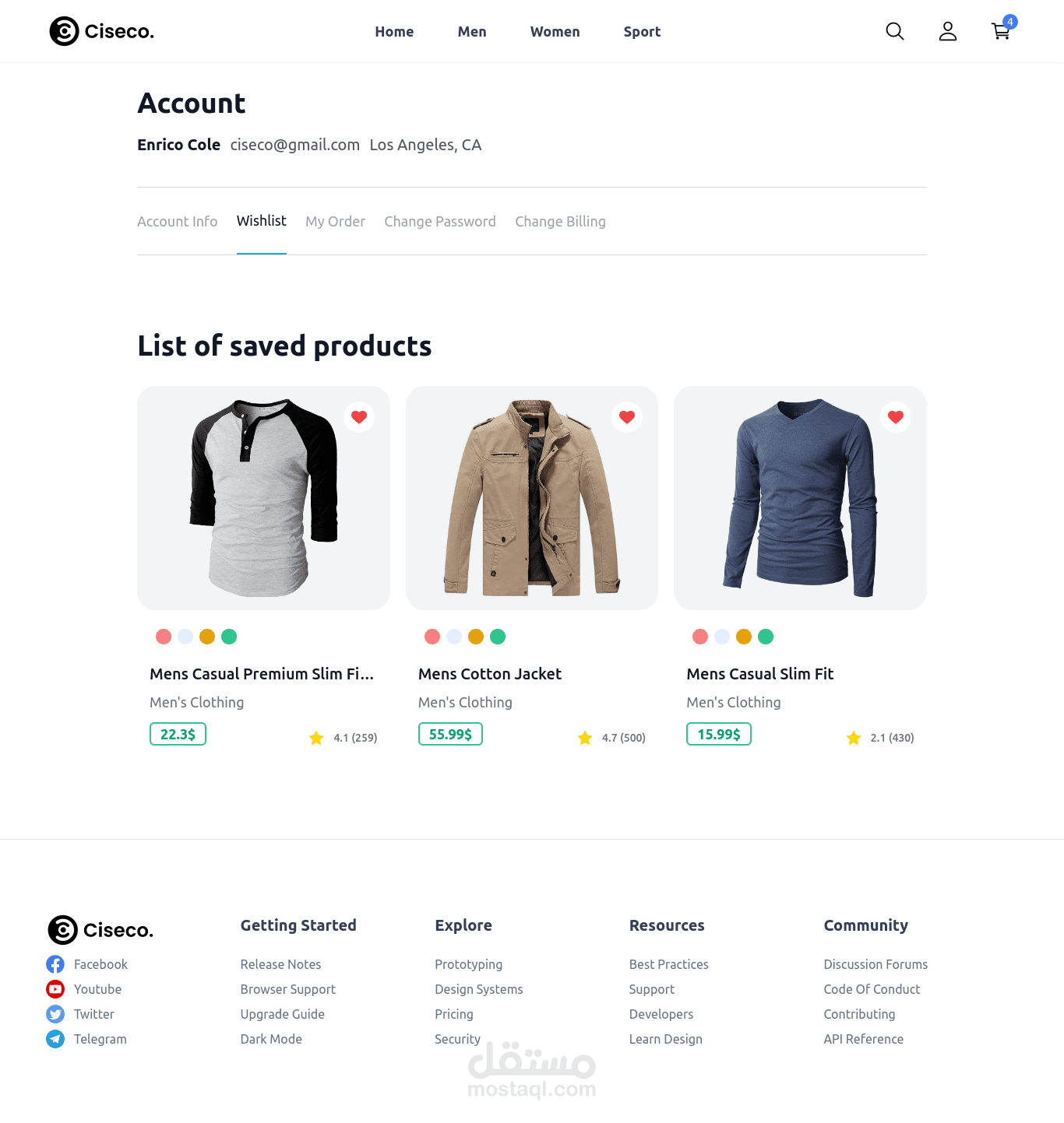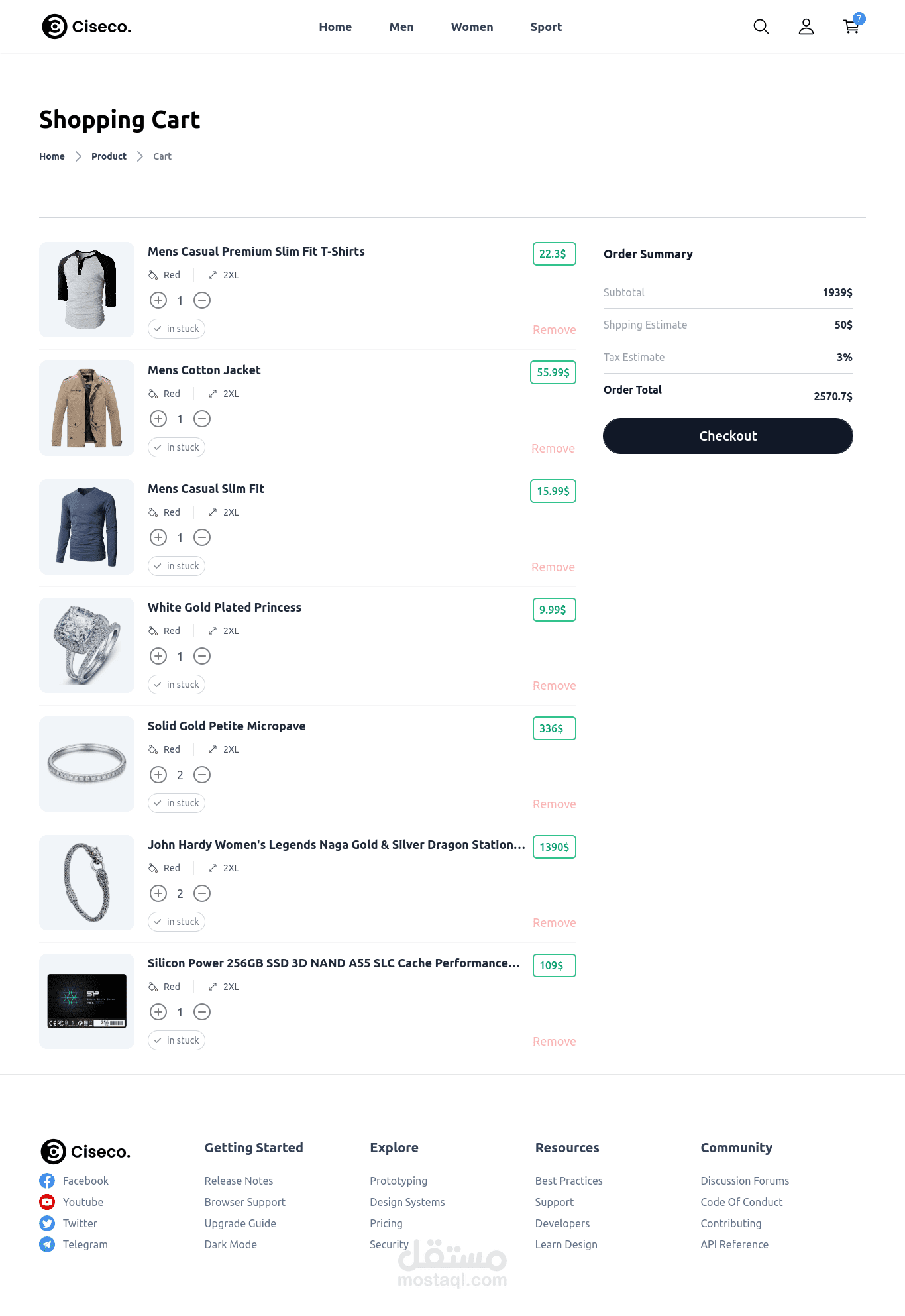 Features : you can add and remove items to cart , the website contain +10 screen, the website have product filter
