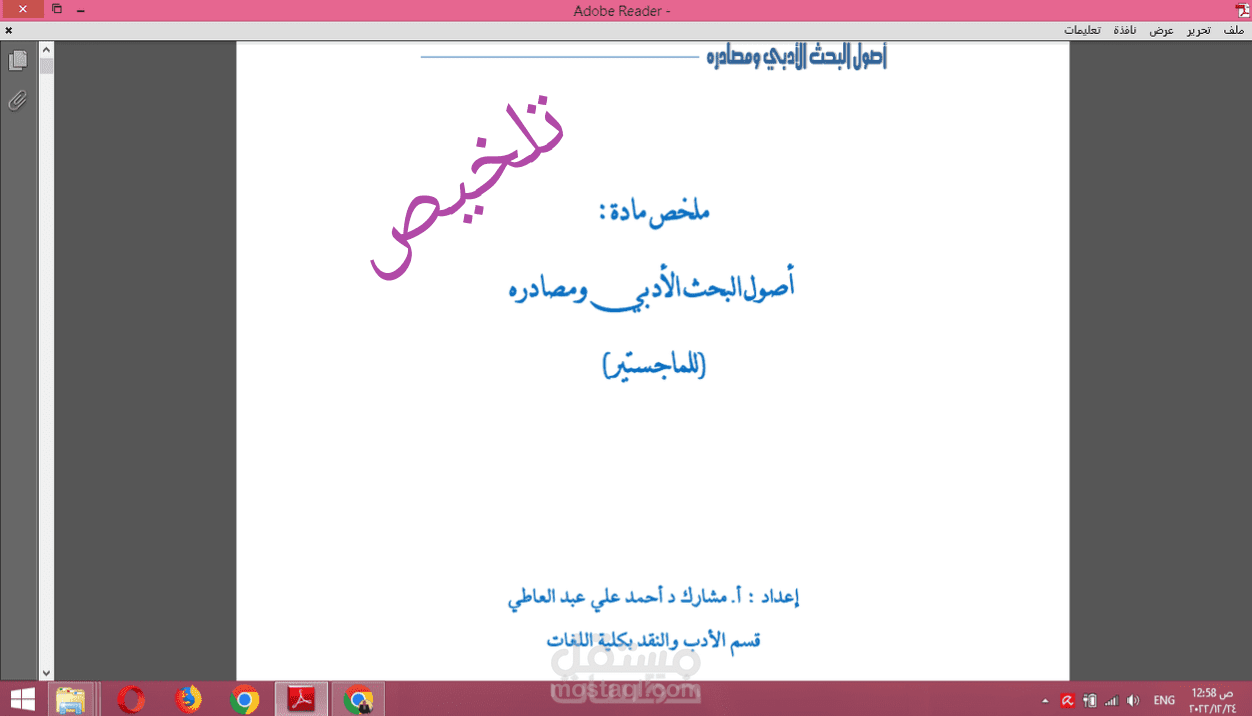 تلخيص مواد جامعية لمستوى الماجستير بجامعة عالمية مرموقة