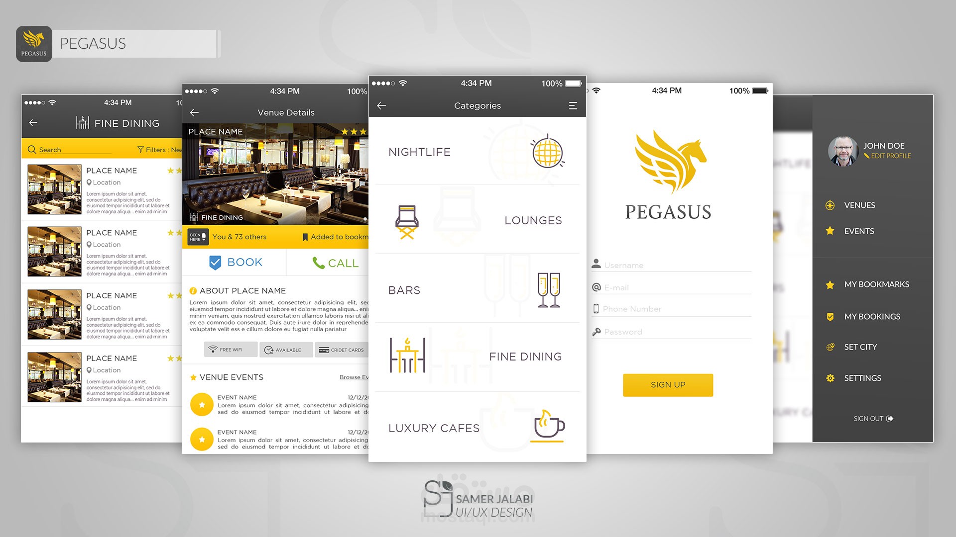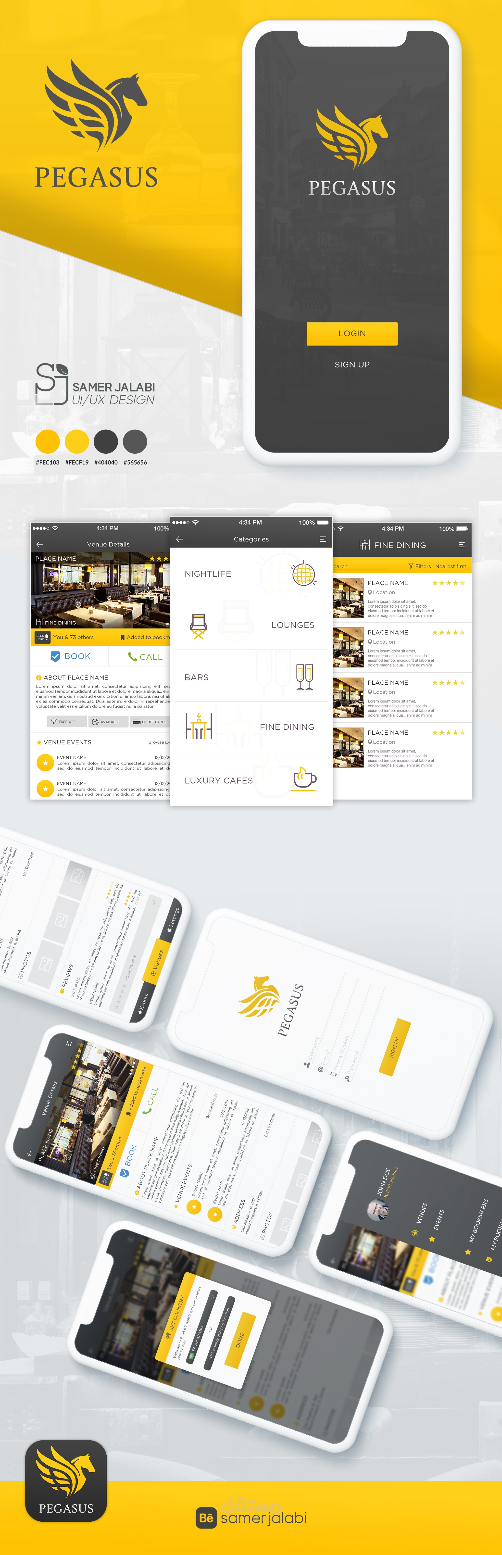 تصميم تطبيق Pegasus لحجز المطاعم والمناسبات