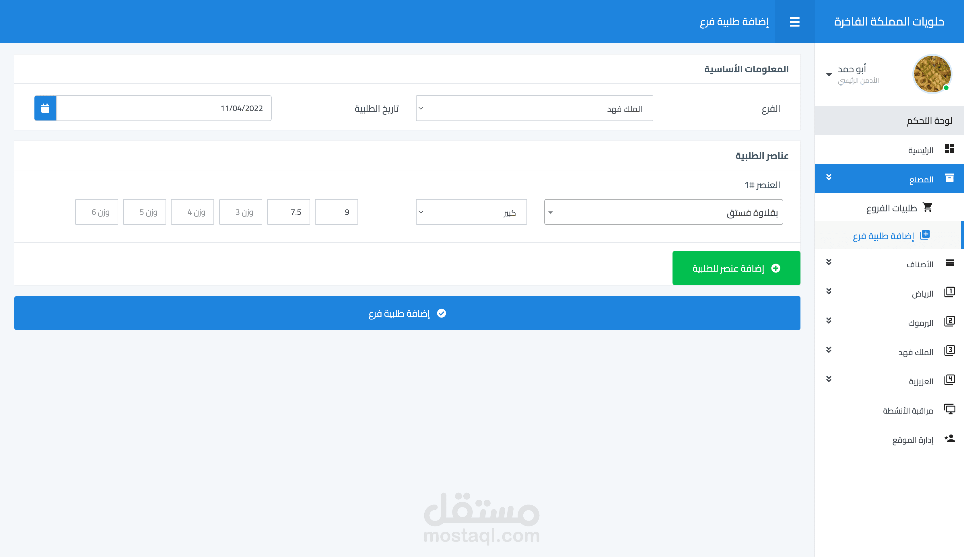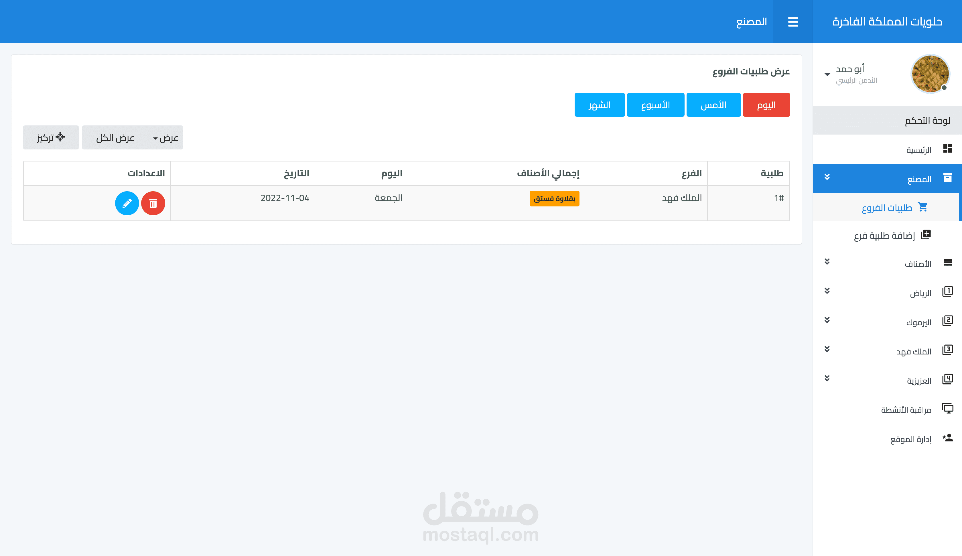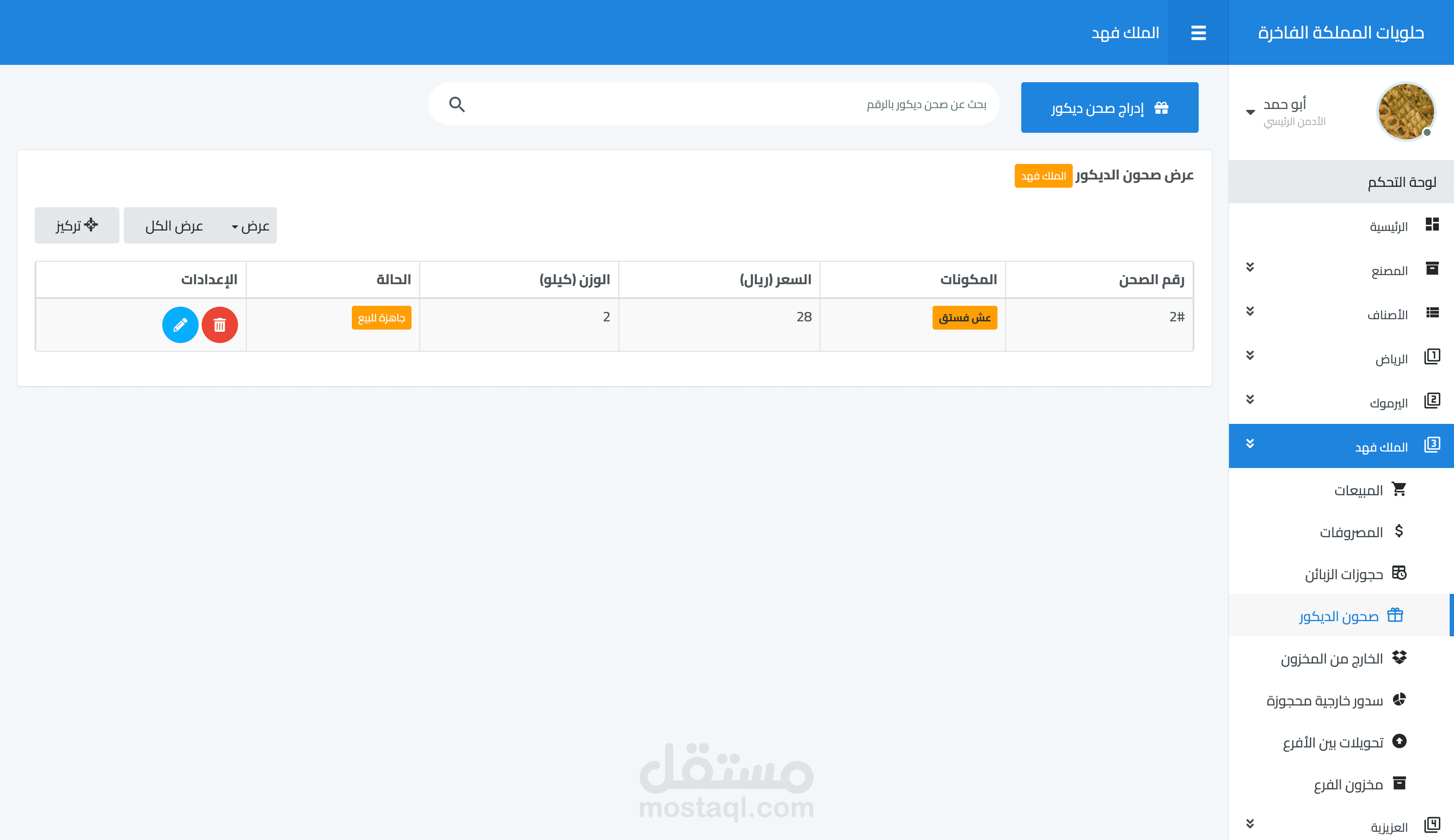 ادارة مبيعات ومصنع سلسلة فروع حلويات