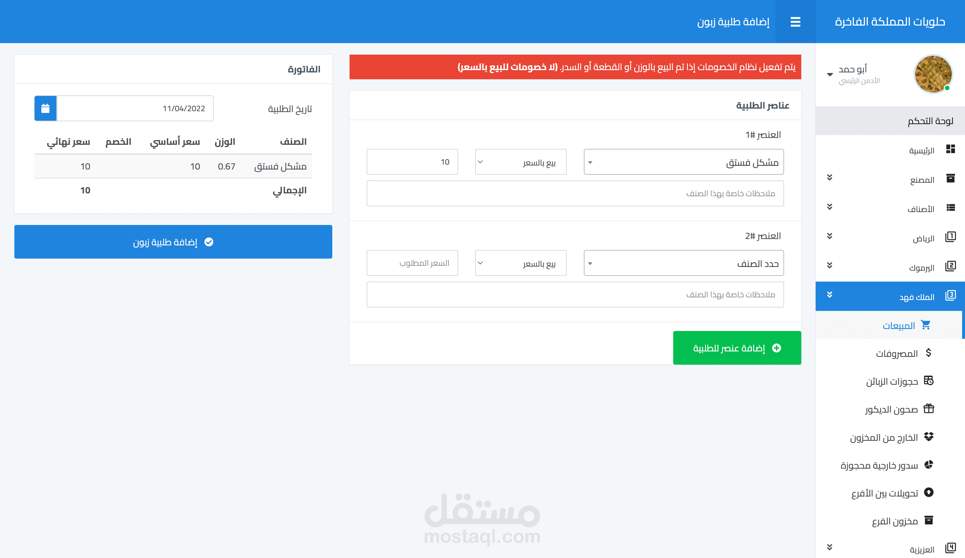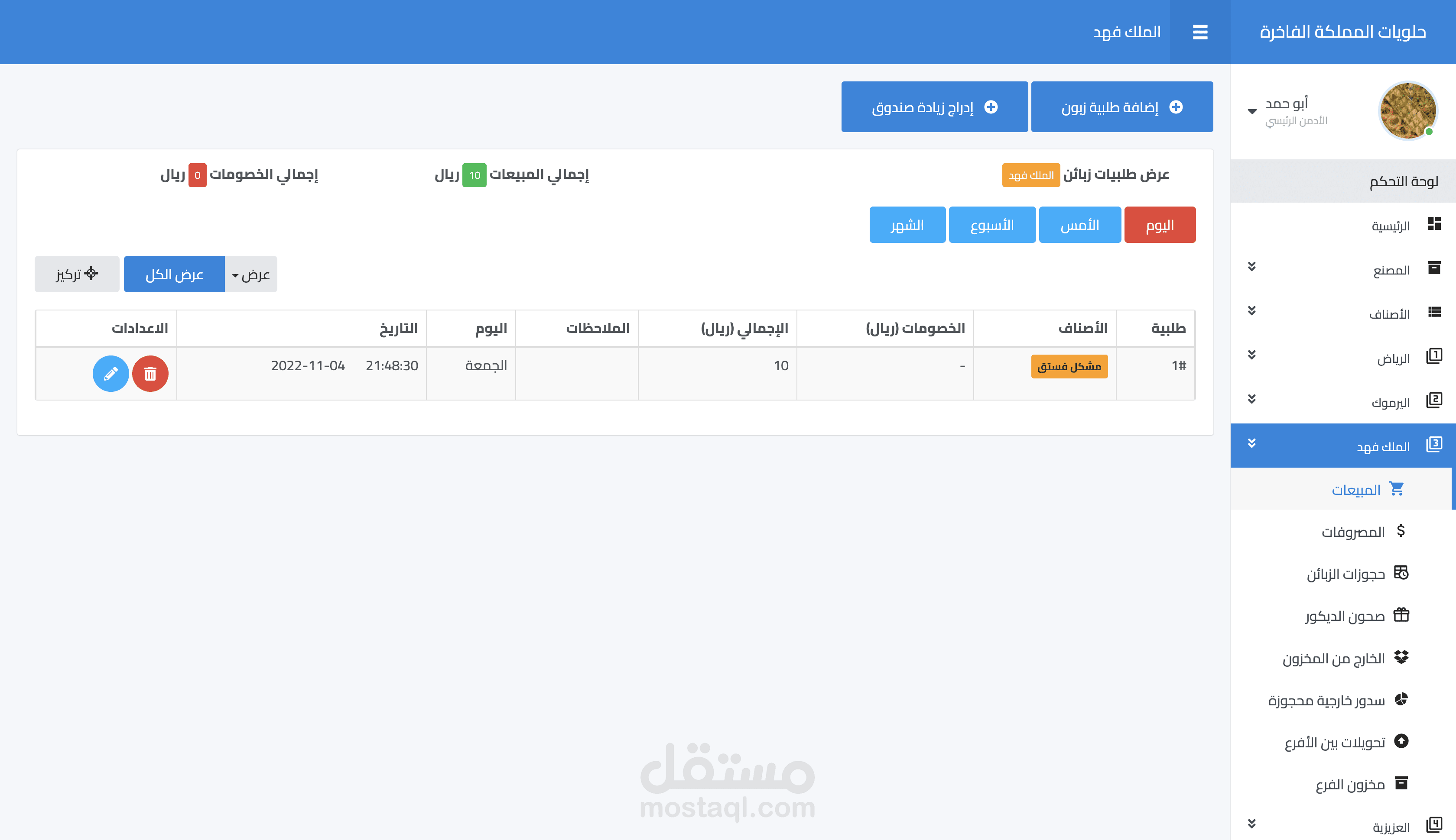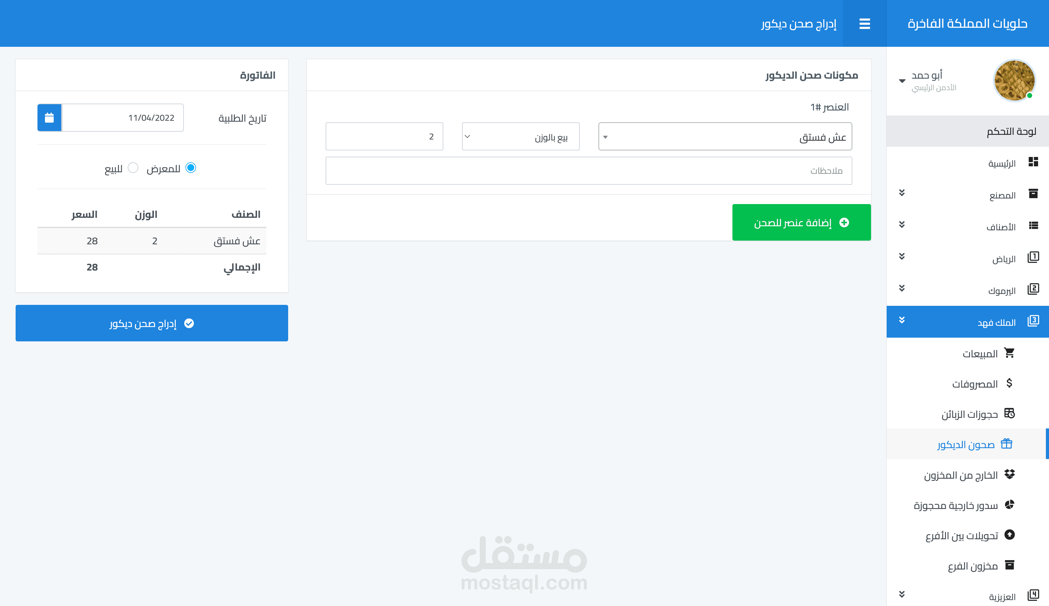 ادارة مبيعات ومصنع سلسلة فروع حلويات