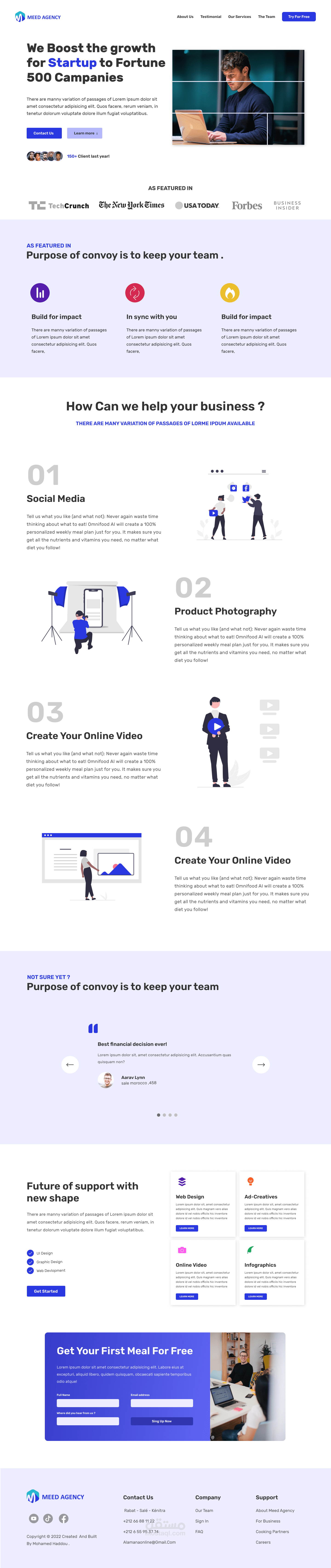 تصميم وبناء موقع إلكتروني لشركة Meed Agancy لعرض مجموعة من خدماتها والتعريف بالعديد من المعلومات المتعلقة بها .