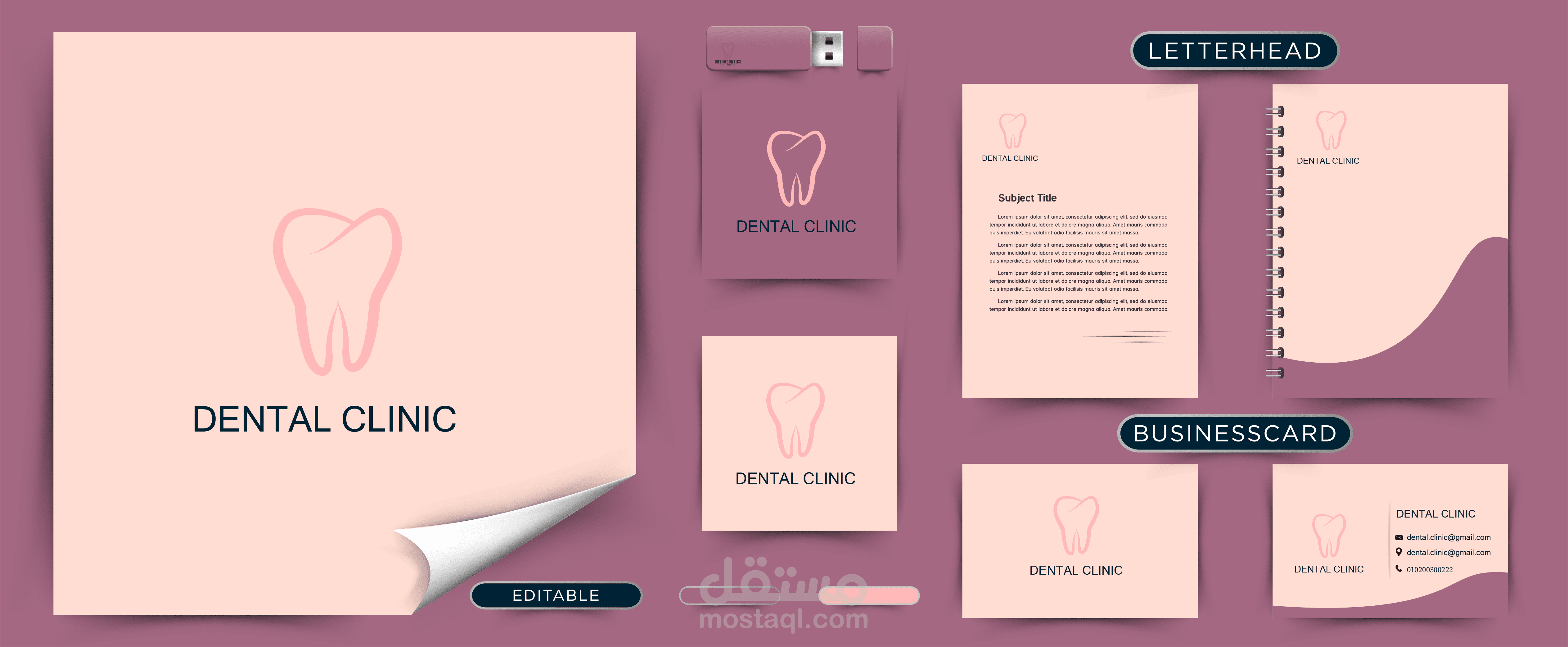 تصميم لوجو محترف لعياده اسنان وتصميم ادوات المكتب