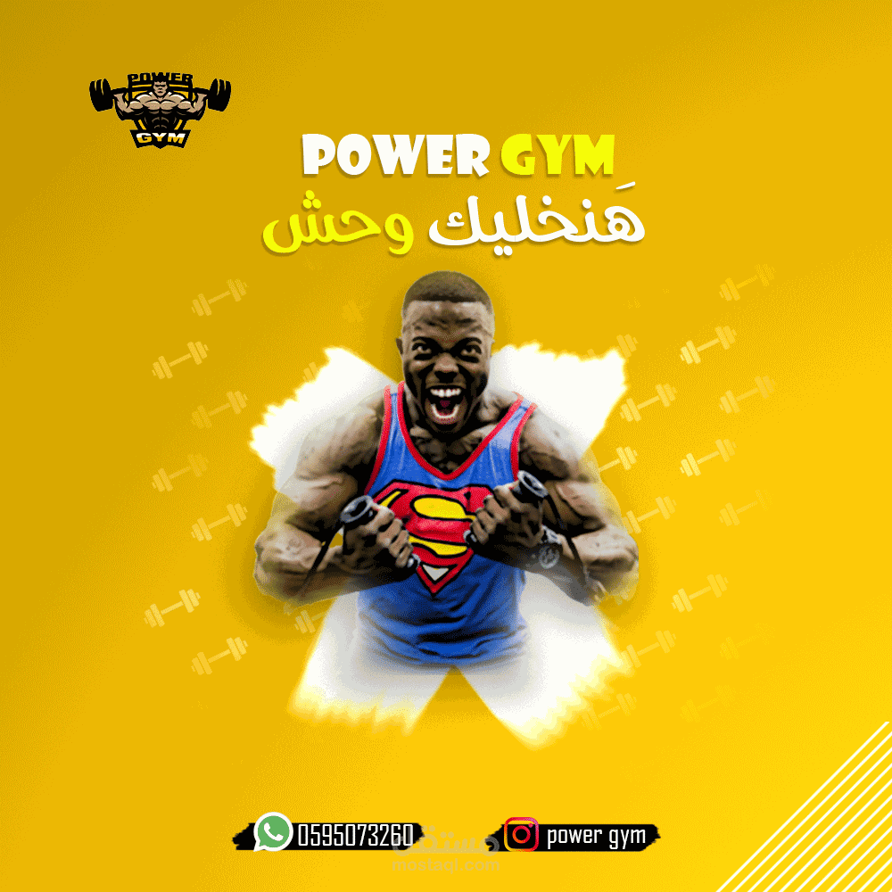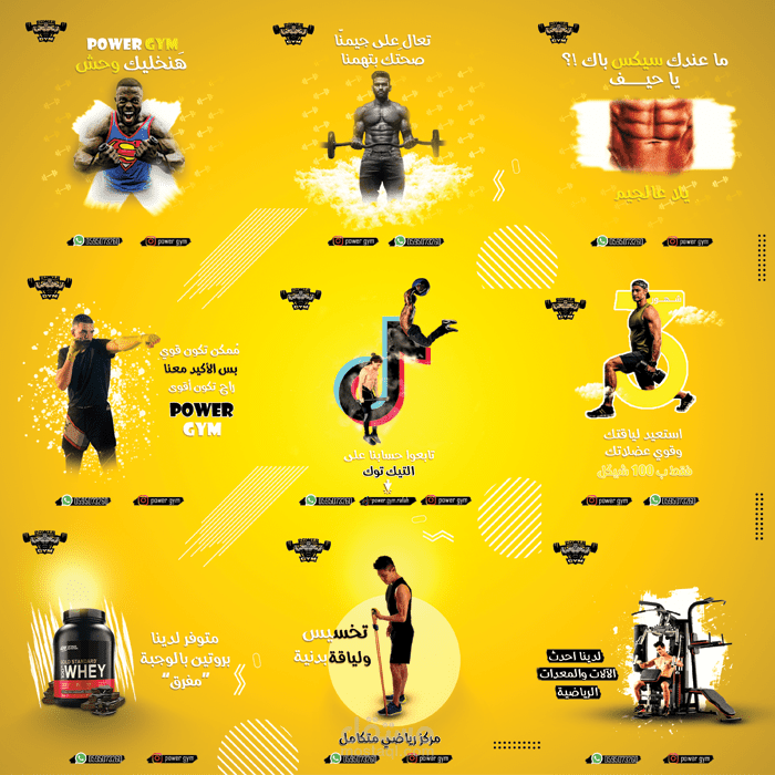 تصميم بوستات سوشيال ميديا لصالح باور جيم power gym , وهي صالة العاب رياضية ولياقة بدنية , نهدف من خلال البوستات الى الترويج للصالة الرياضية و التواصل مع العملاء وايصال رسائل الصالة لهم من خلال هذه البوستات الاعلانية مثل العروض والخدمات والميزات التي تقدمها الصالة لزبائنها بطريقة تواكب التطور الاعلاني من اجل المنافسة في عالم الصالات الرياضية الحديثة .
