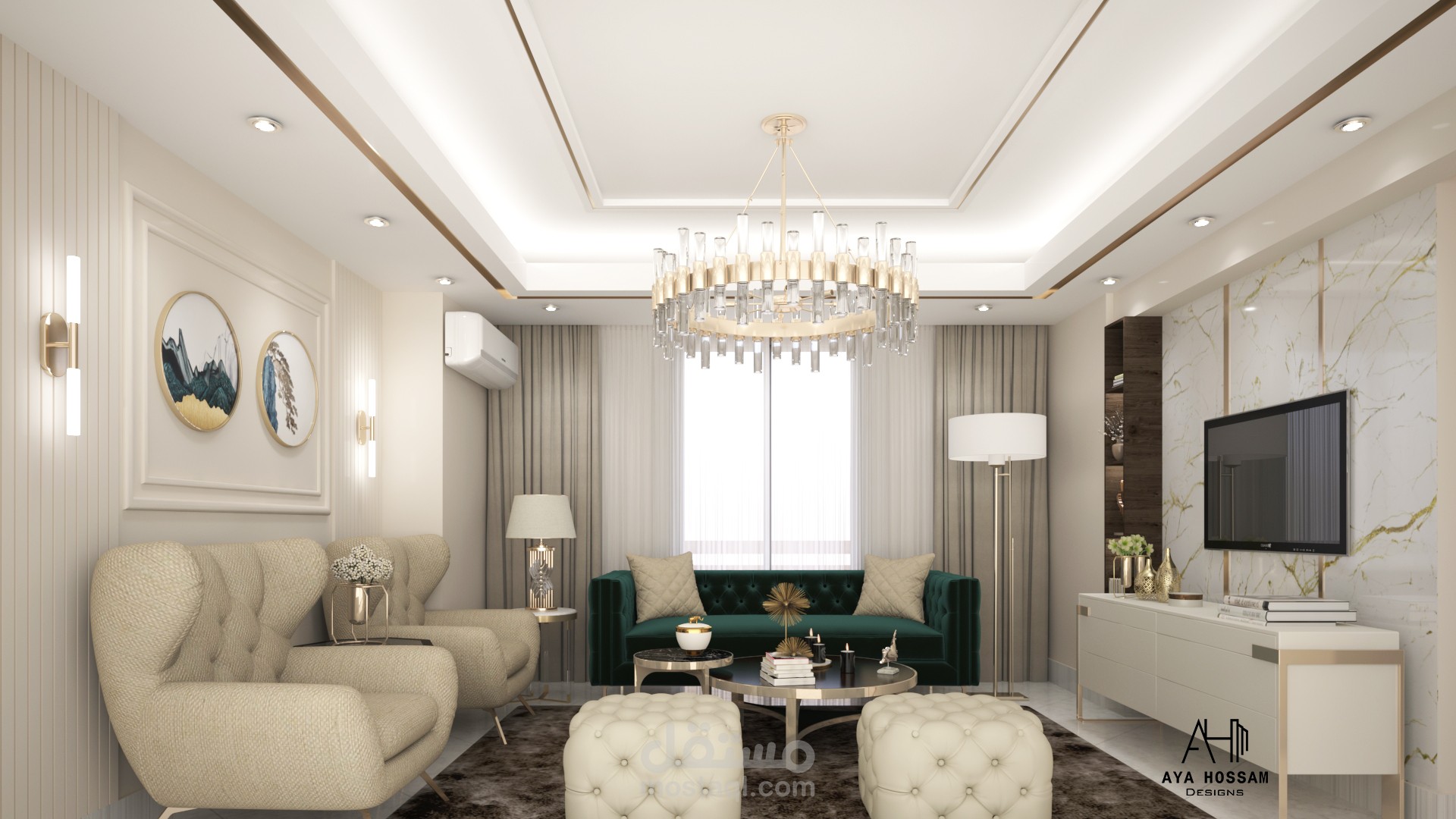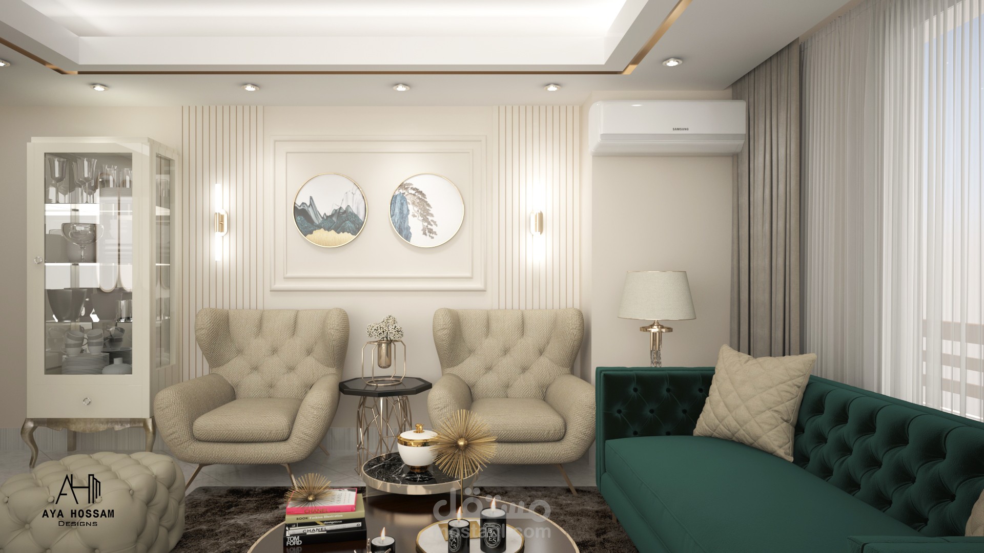 تصميم داخلى لصالة منزل على الطراز المودرن باستخدام أحدث برامج التصميم الحديثة 3dmax & autocad & photoshop &vray