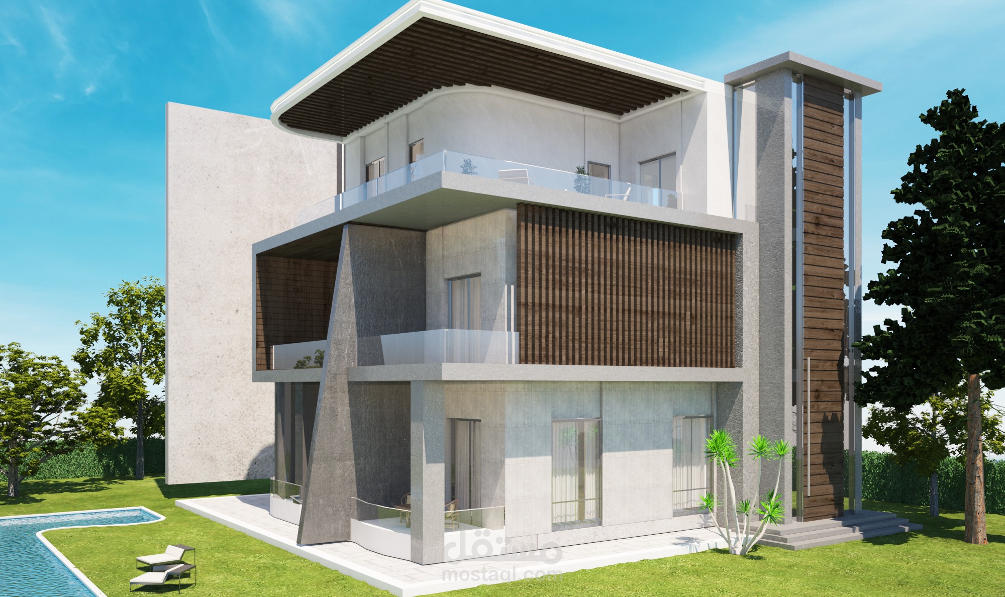 تصميم واجهة خارجية لفيلا على الطراز المودرن باستخدام أحدث برامج التصميم الحديثة 3dmax & autocad & photoshop &vray