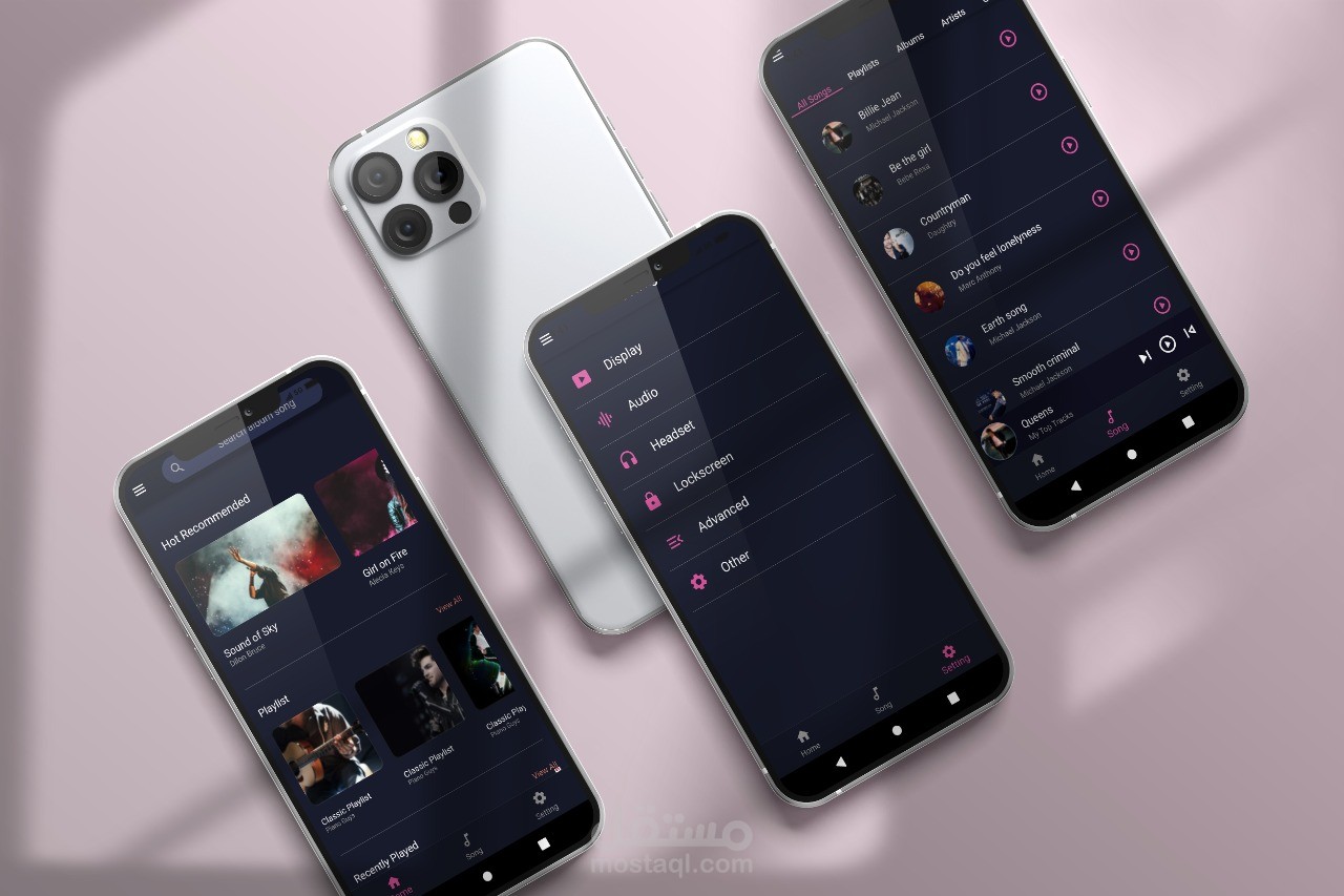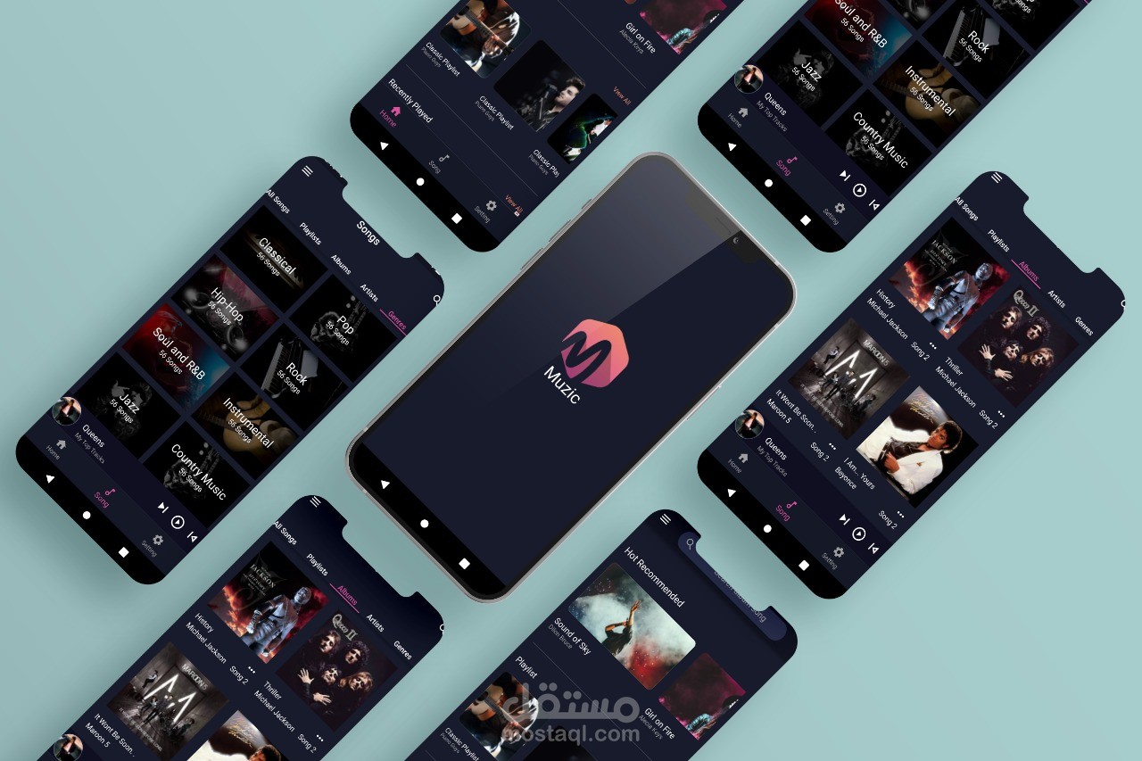 تصميم وبرمجة تطبيق موسيقى جذاب