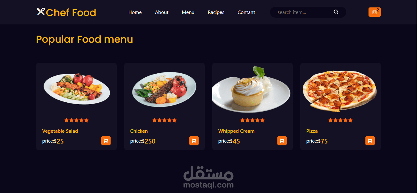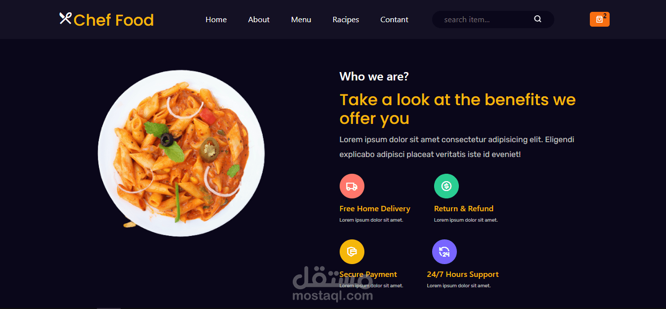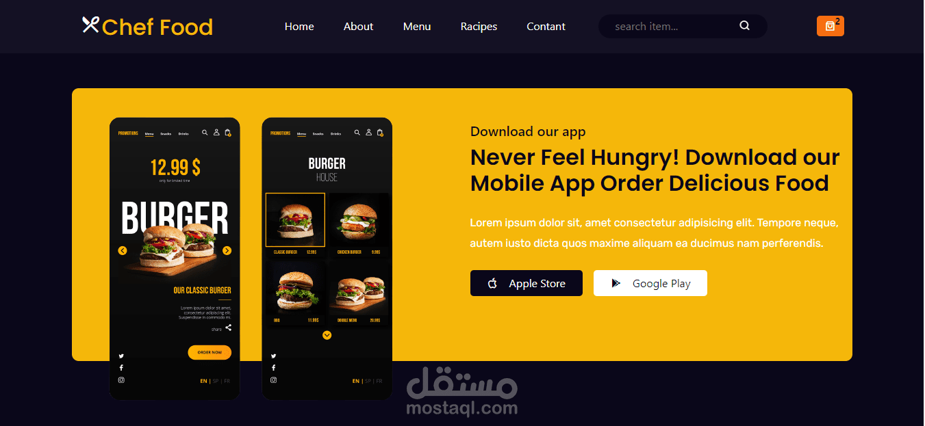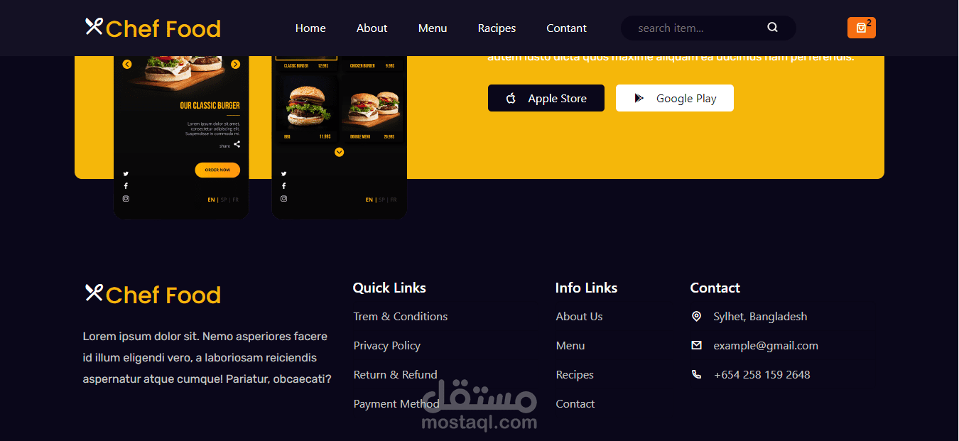 مشروع لمطعم على اعلى جودة متجاوب مع كل المقاسات responsive design
