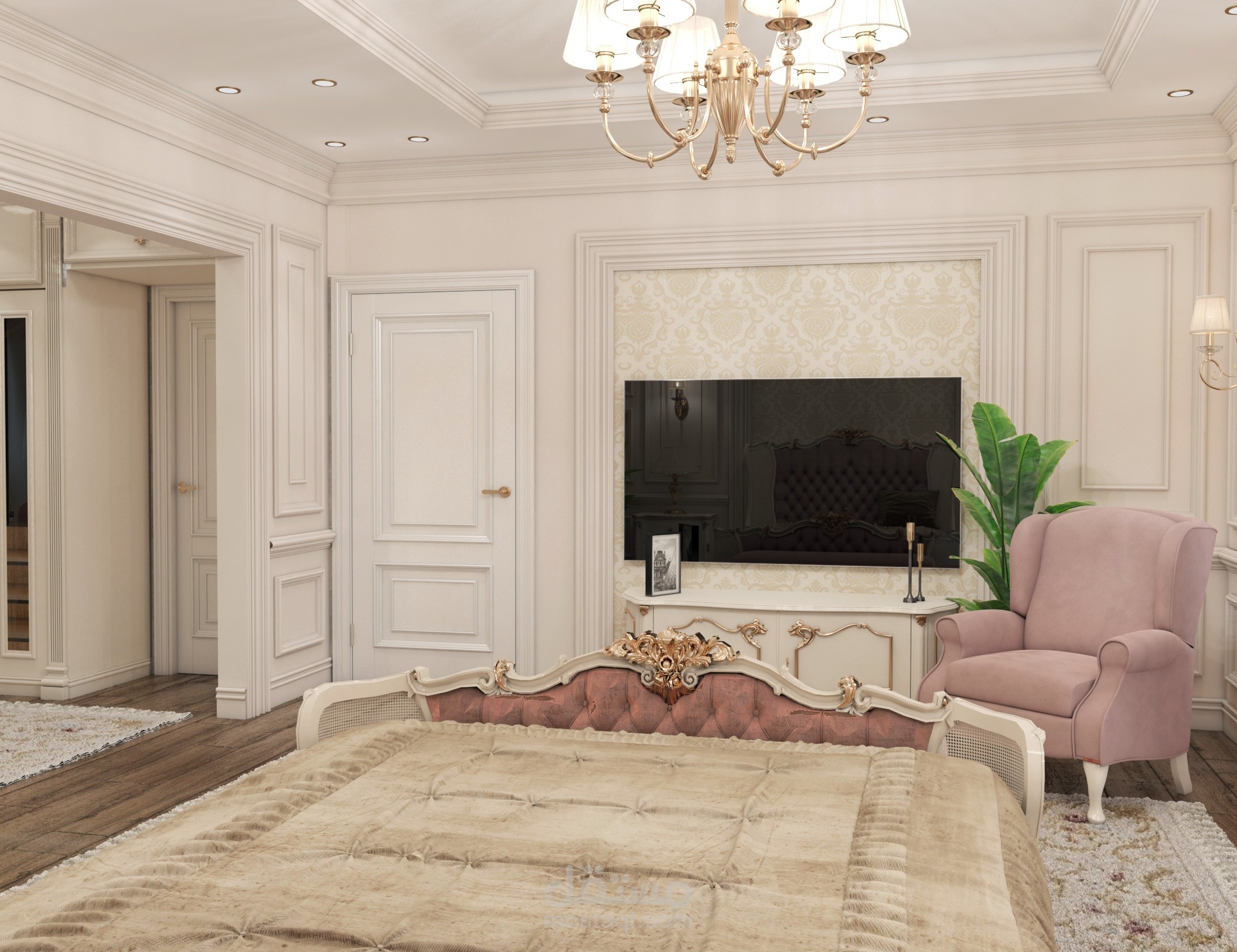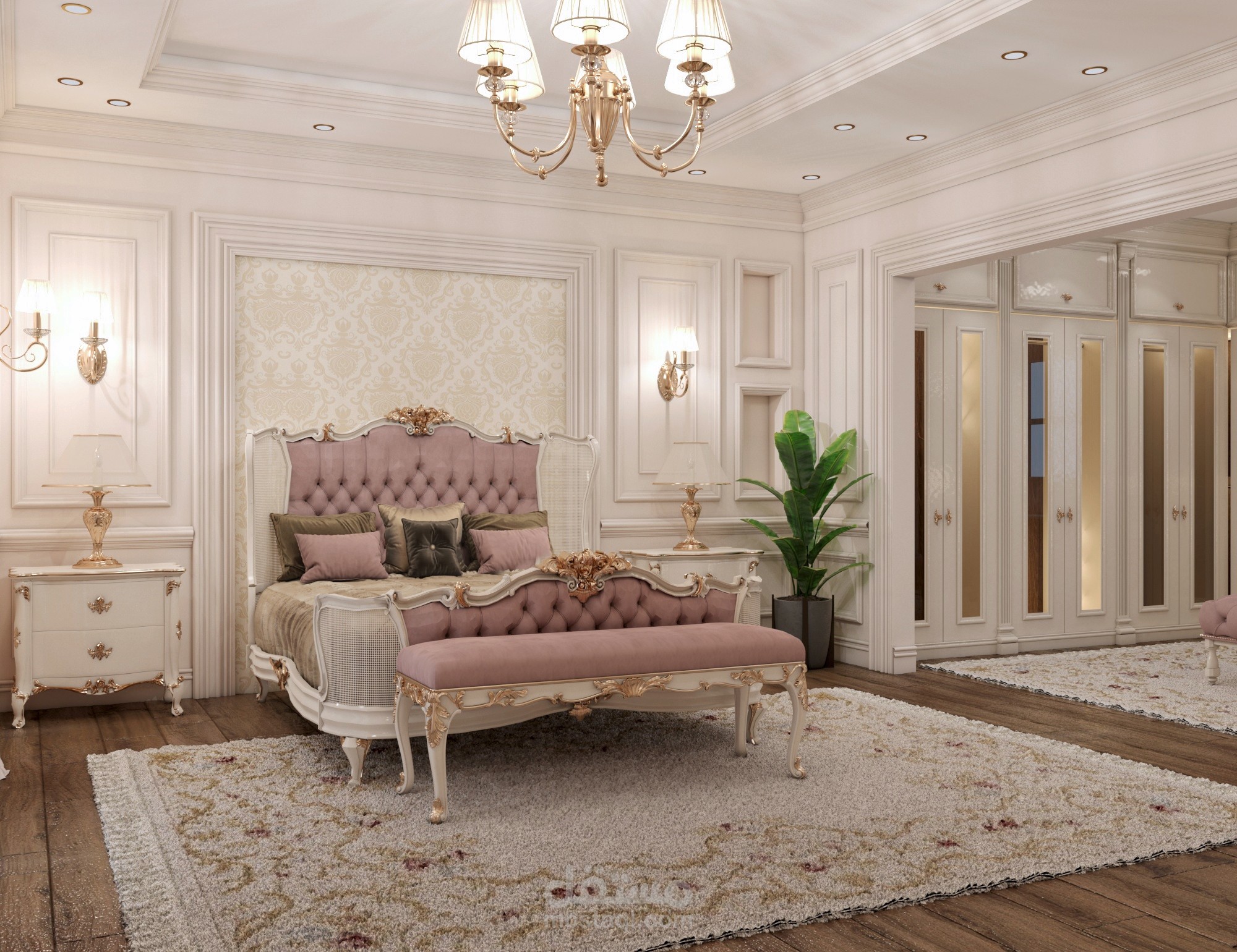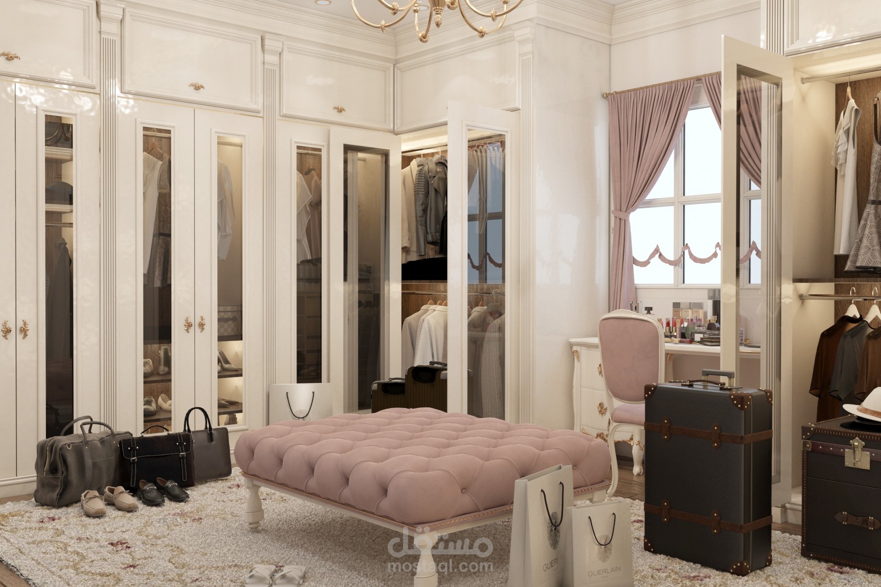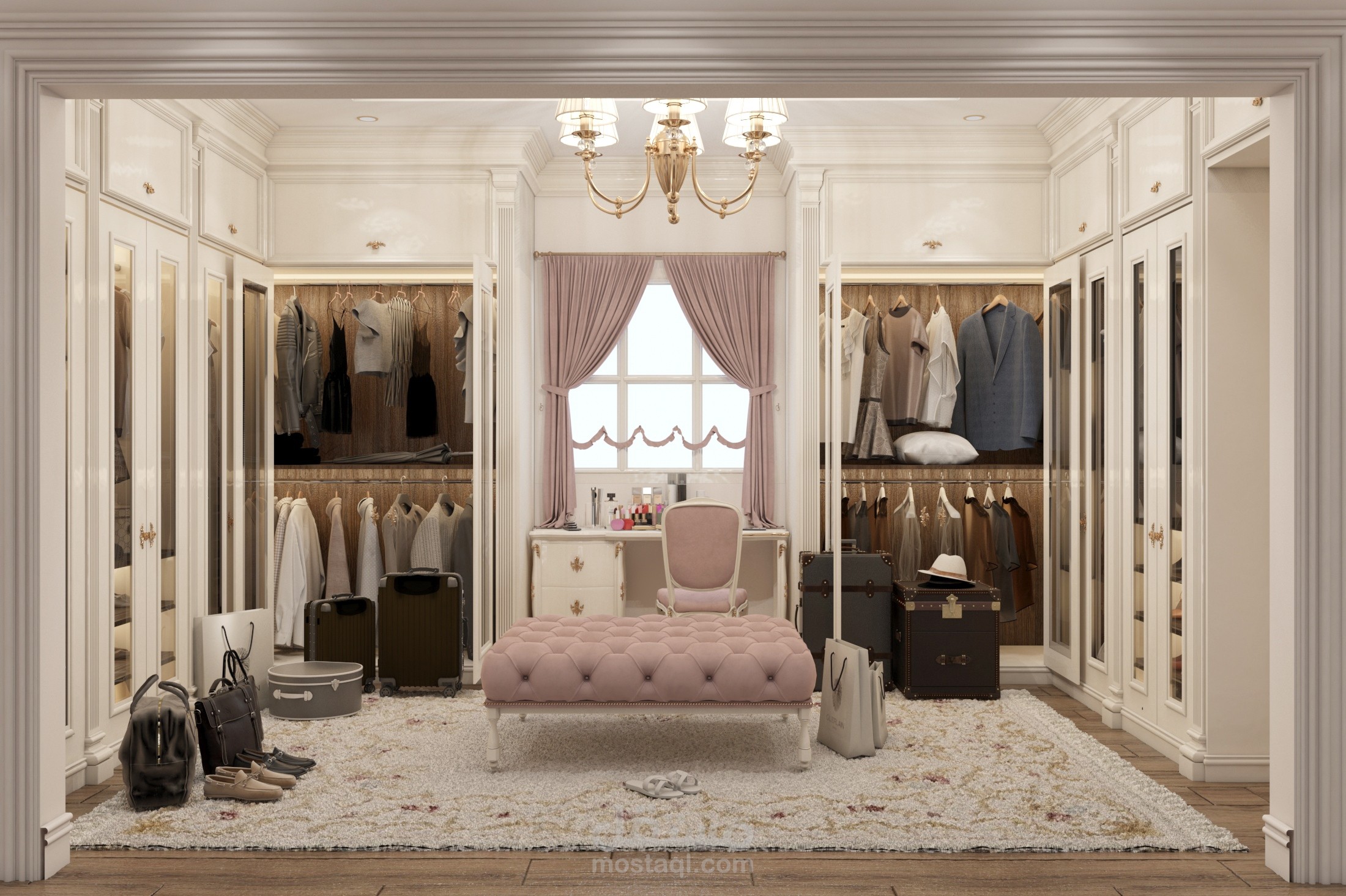 تصميم غرفة نوم كلاسيك ملحق بها غرفة ملابس