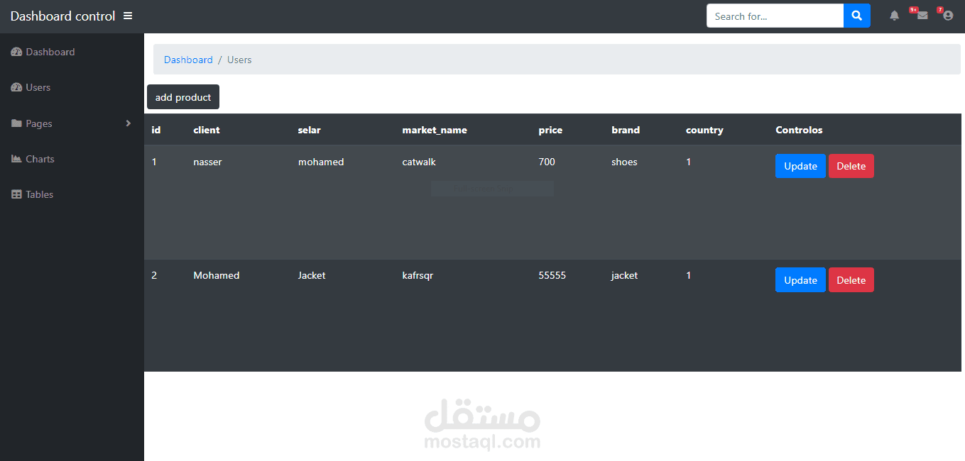 لوحه تحكم تمكن الادمن او المتحكم في اضافه وتعديل وحذف المنتجات اي كان نوعها وتمكنه من استقبال الشكاوي ومعرفه عدد الزوار للموقع مع امكانيه لحذف الاعضاء او عدم عقبولهم ال بموافقه المتحكم
