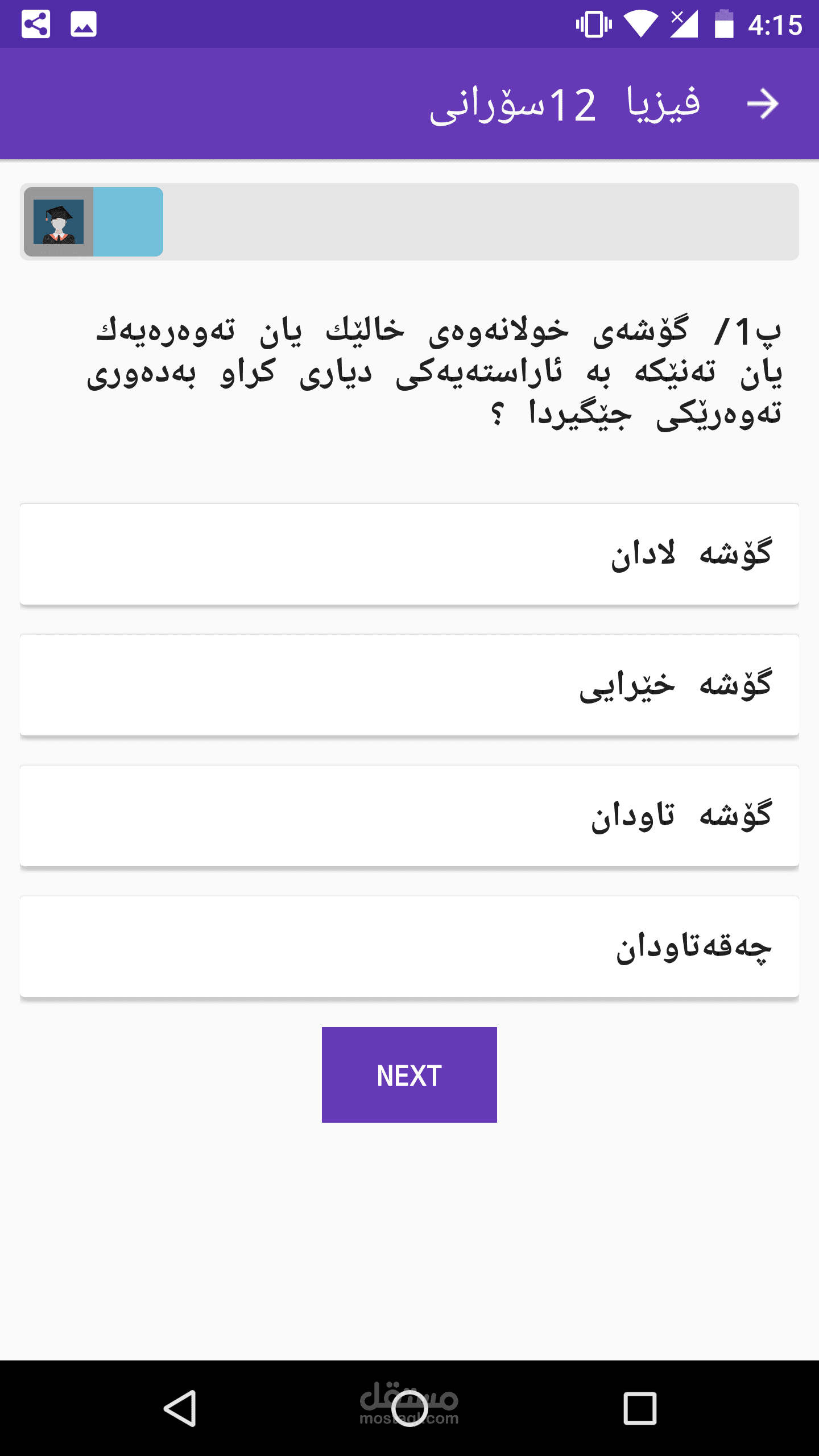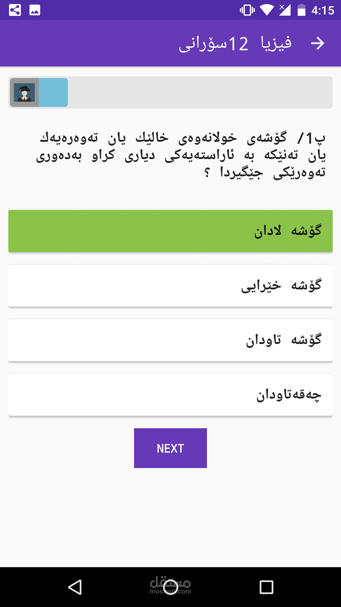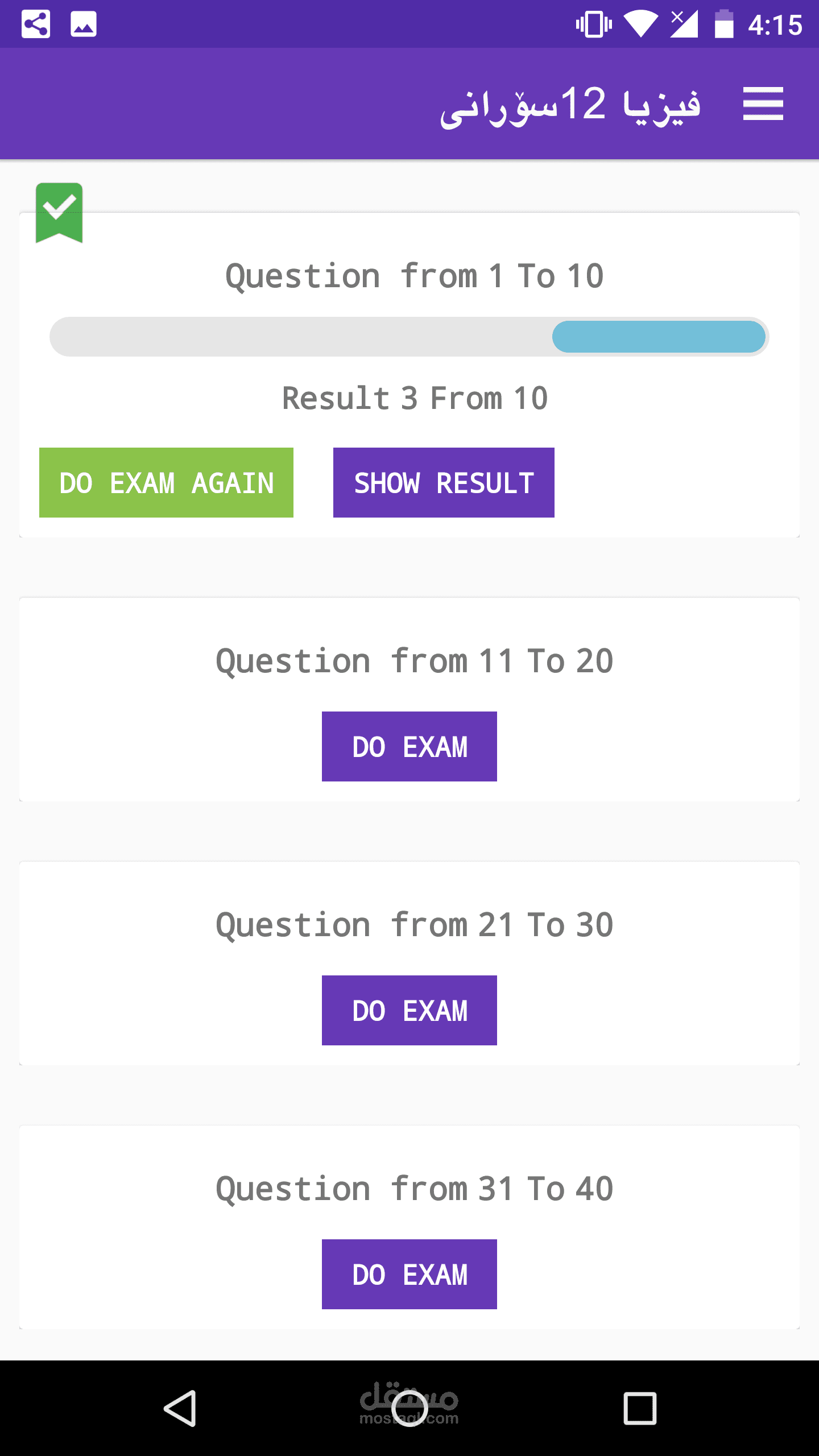 * This Application contain from all classes of high scholl with 9class from Kurdistan region , just class 12 have more than 19000 chosen questions.