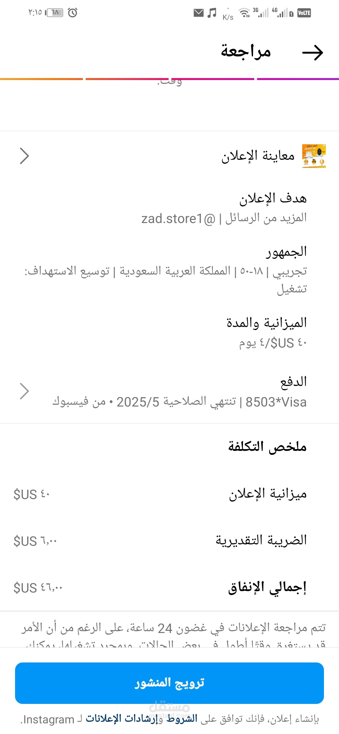 اعلان انستجرام ومتابعة النتائج