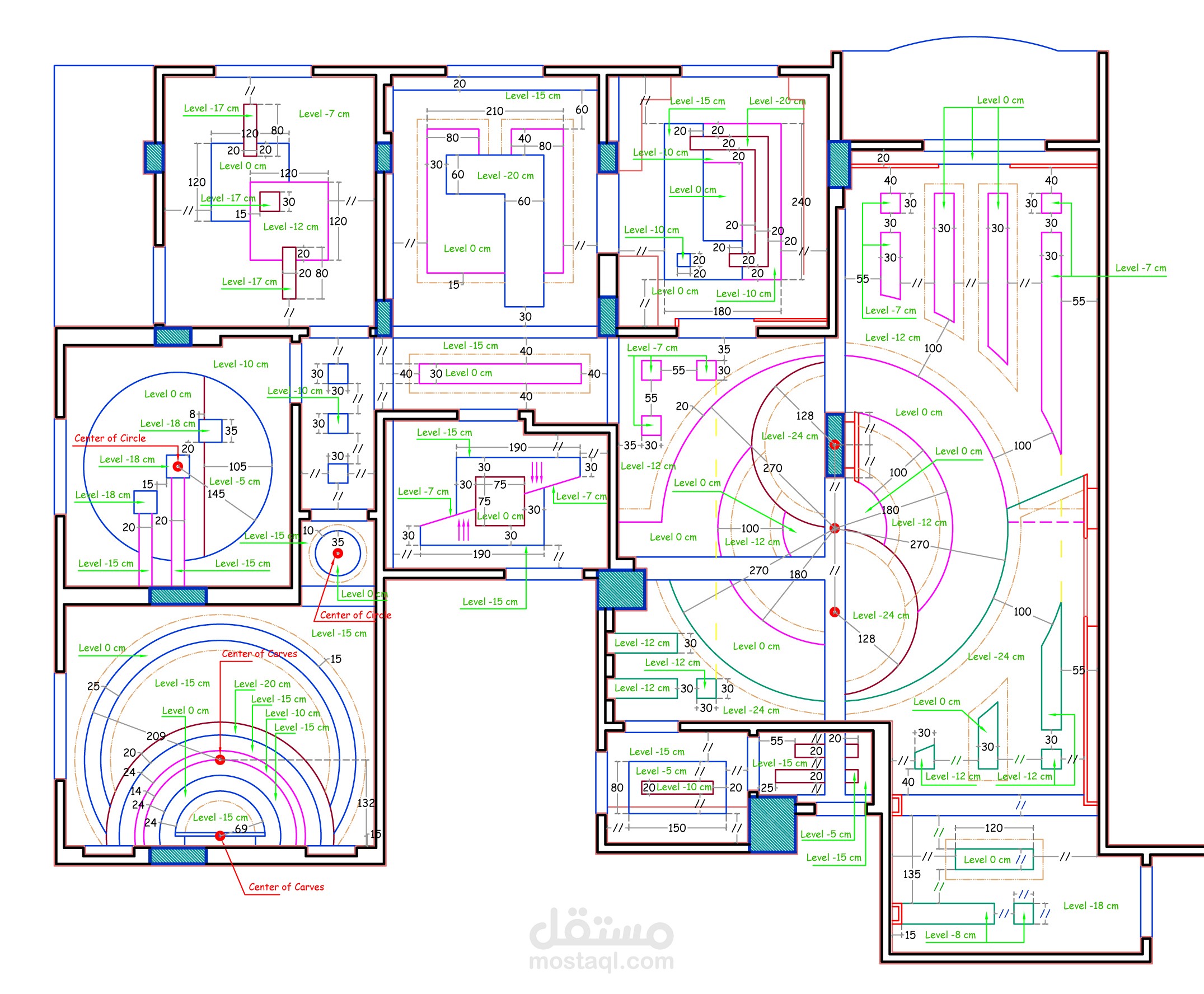 تصميم بلانات الاسقف والارضيات والكهرباء والاضاءة والسباكة والصحى والتكييفات