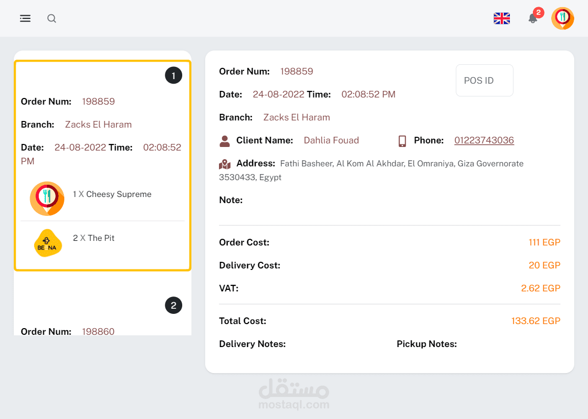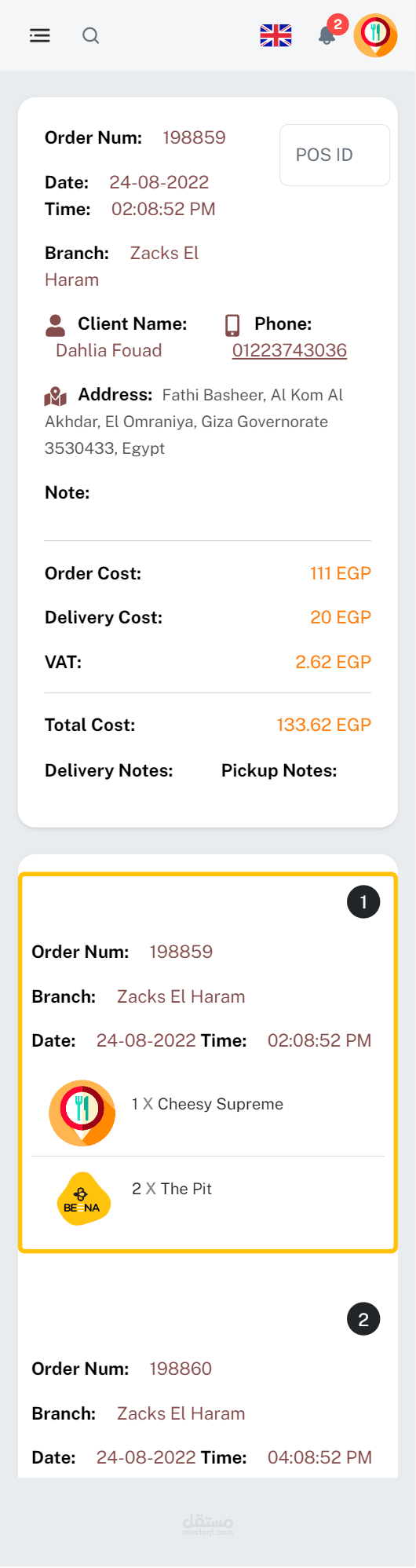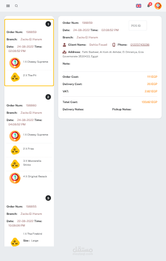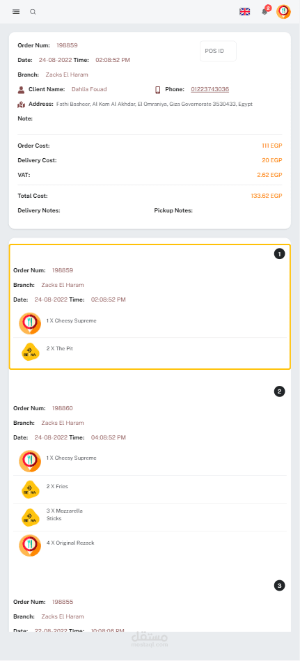 هو موقع لأدارة الطلبات Orders الوارده لمطعم.