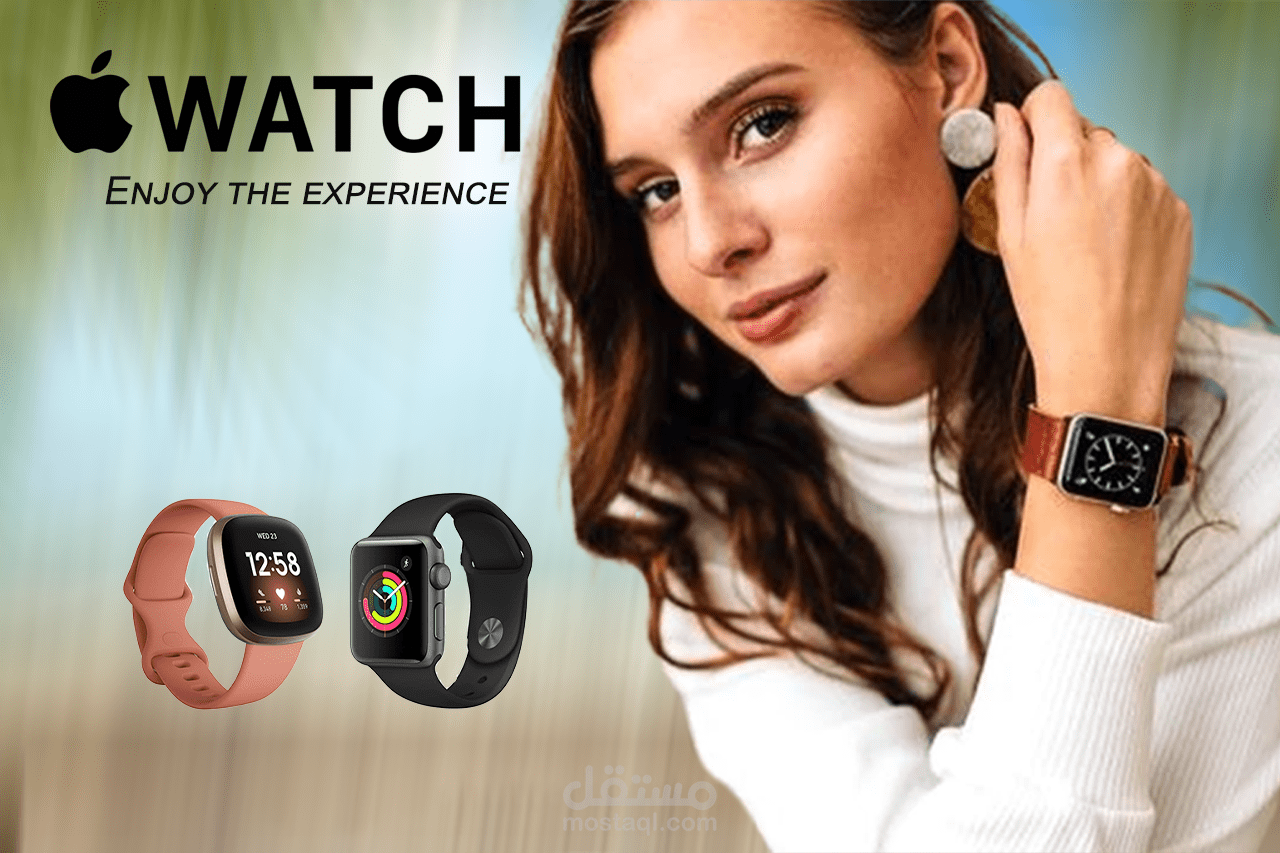 العمل مخصص للاعلان عن الساعه الذكيه الخاصه من الماركه العالميه apple العمل يميل للبساطه حيث ان الساعه فريده من نوعها فهى شهرتها واسعه تتحدث عن نفسها