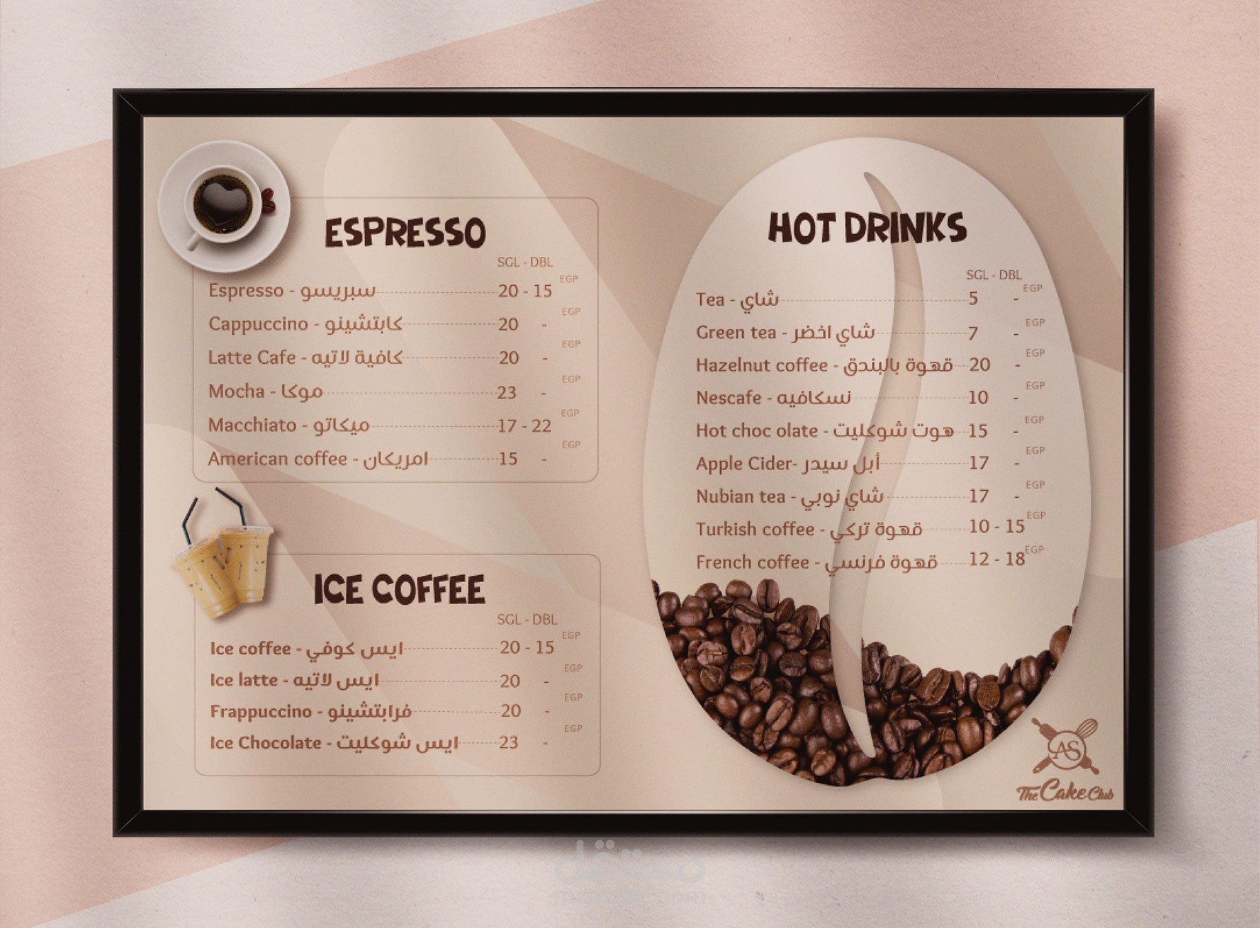 منيو مشروبات بالوان ناعمة وجذابة وتصميم انيق ميمز.