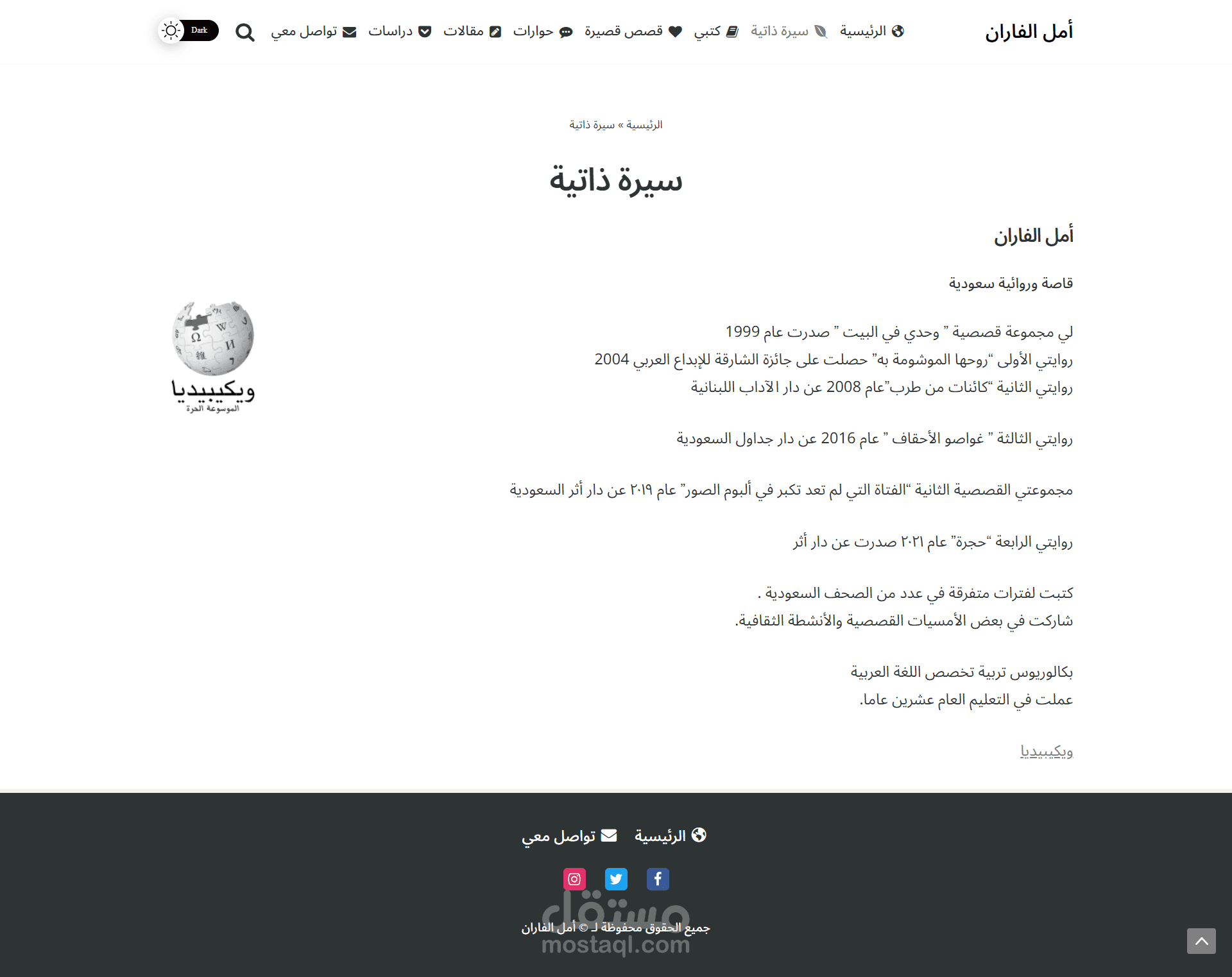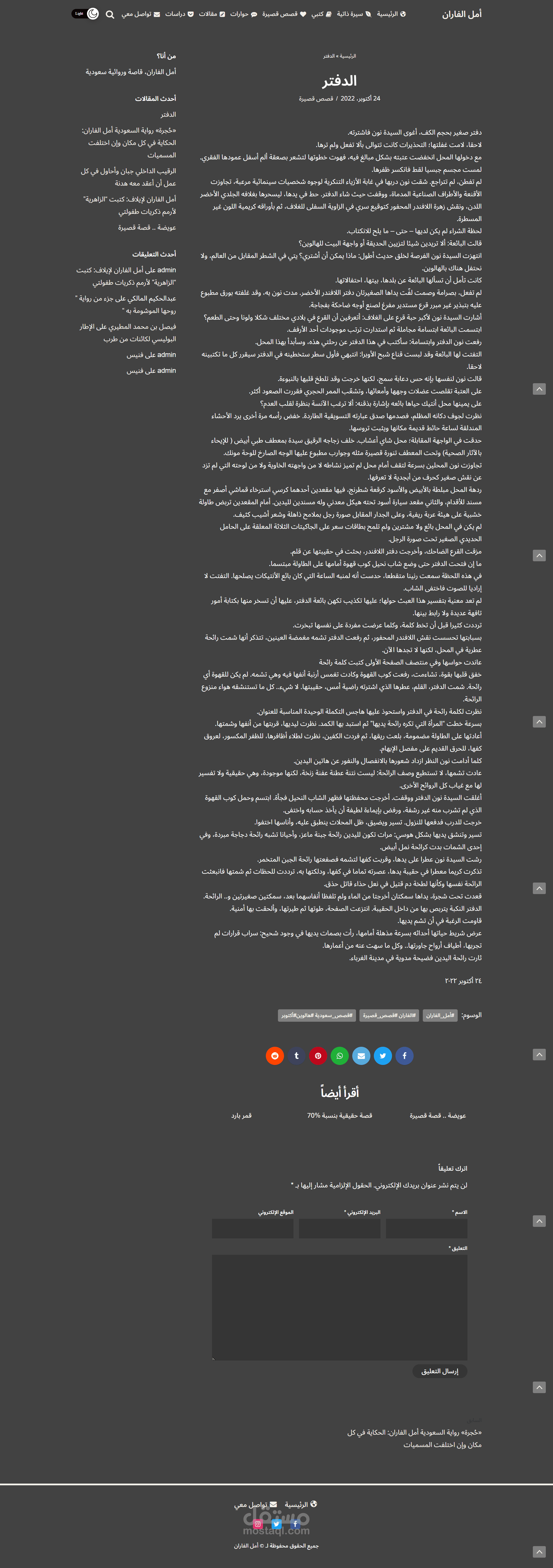 تصميم وبرمجة الموقع الشخصي للكاتبة السعودية المبدعة في القصة والرواية (أمل الفاران)