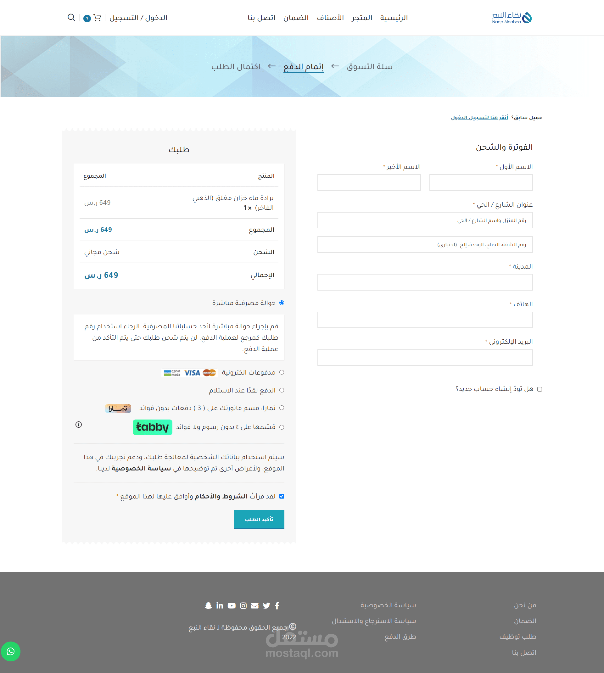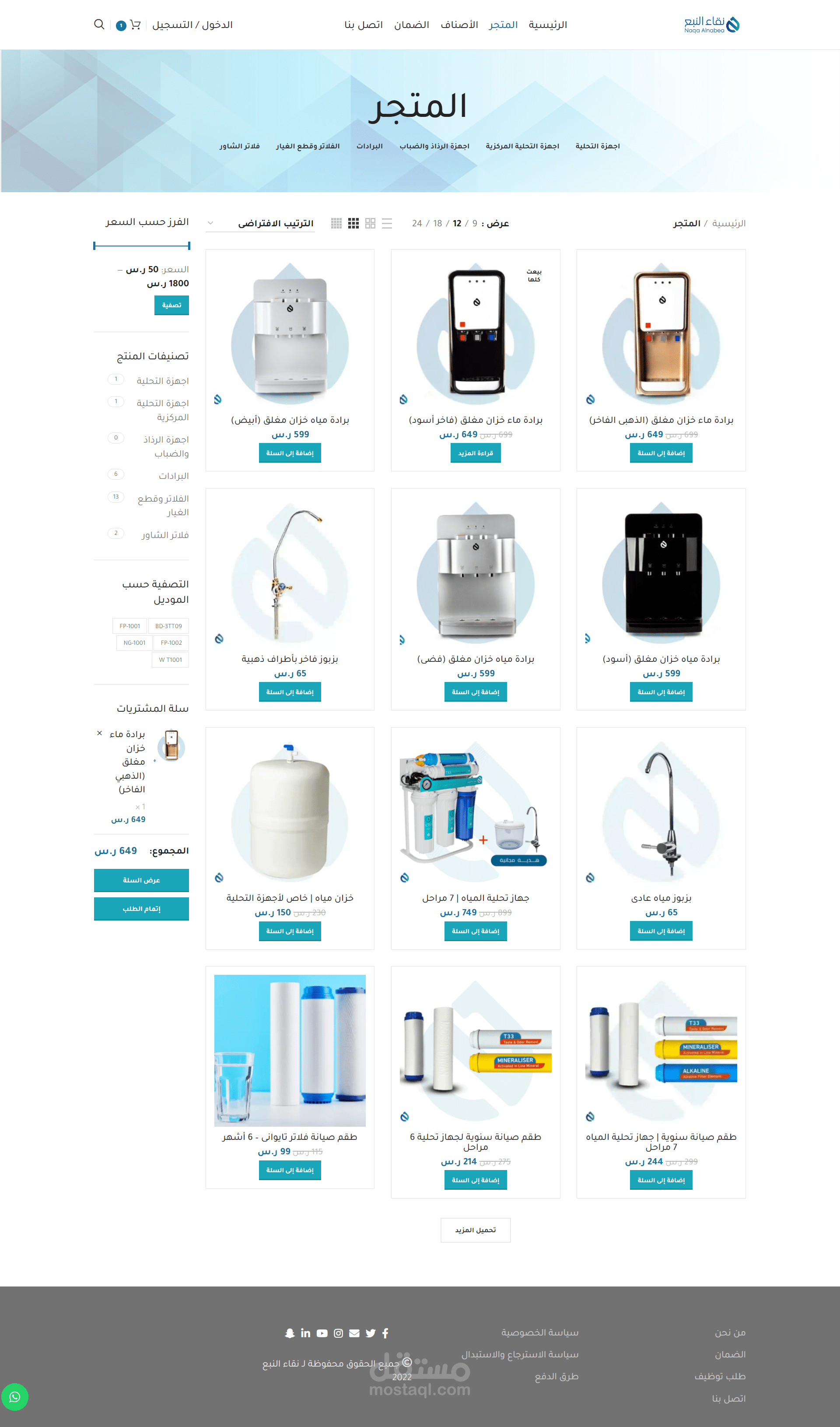 متجر نقاء النبع السعودي لبيع وصيانة فلاتر وبرادات الماء - طرق دفع اونلاين متعددة - الدفع بالتقسيط المريح