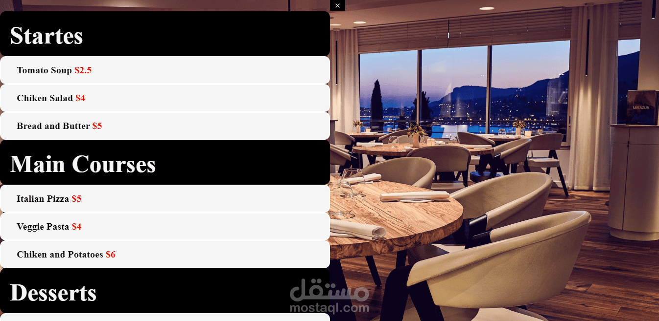 تصميم موقع ويب لمطعم ،بإستعمال HTML ,Css,JavaScript