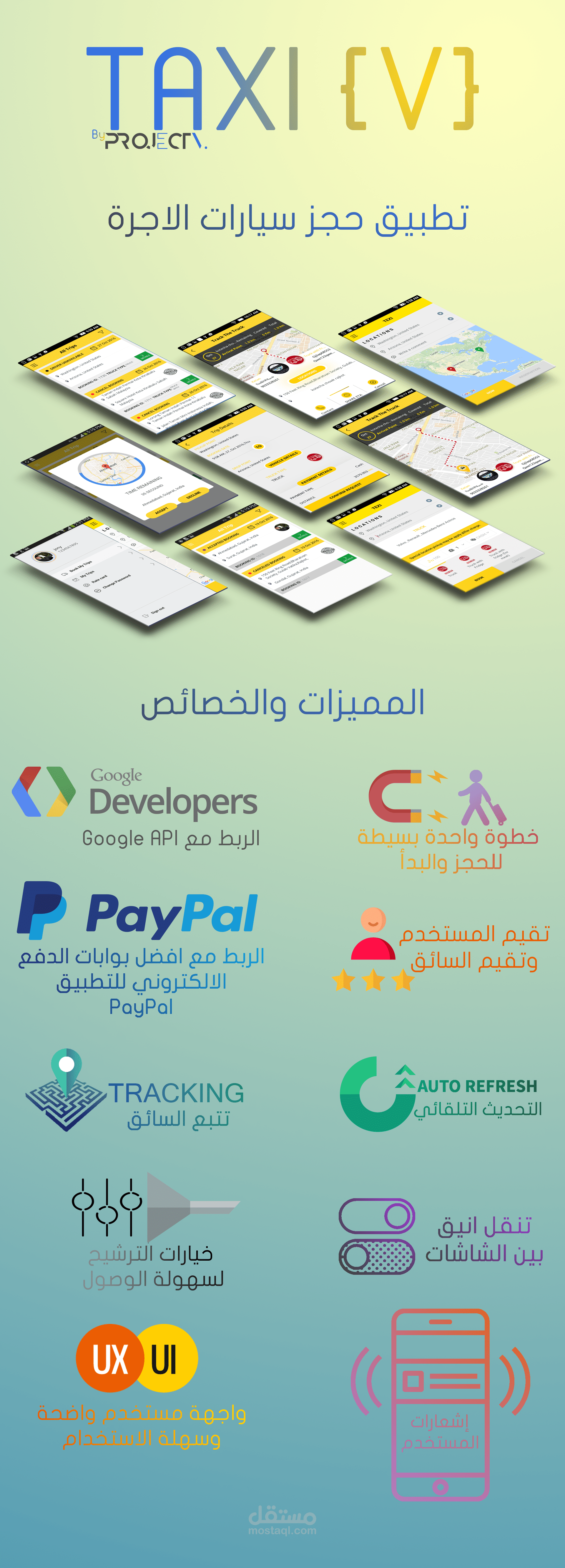 تطبيق Taxi {V} هو تطبيق لحجز سيارات الاجرة مشابة للتطبيق العالمي UBER والتطبيق العربي كريم