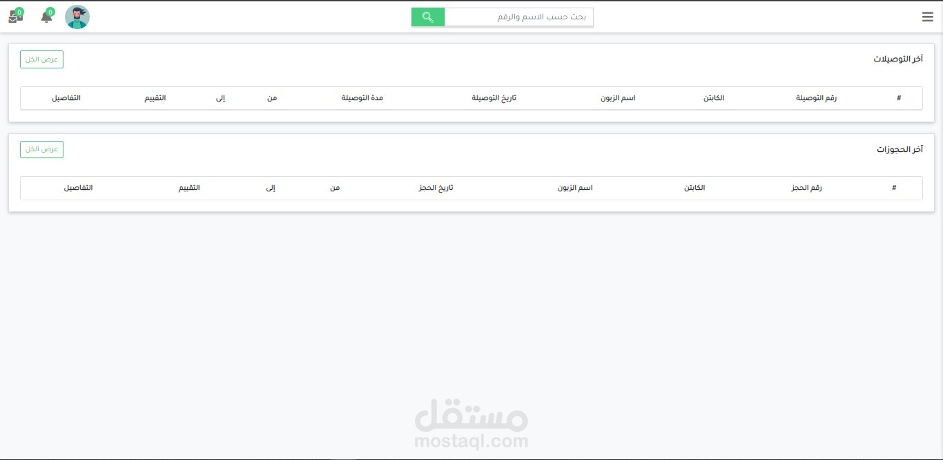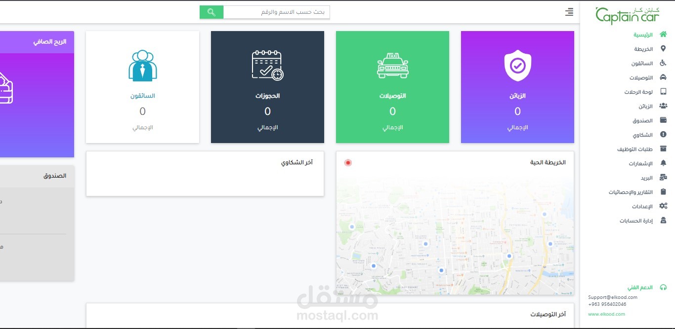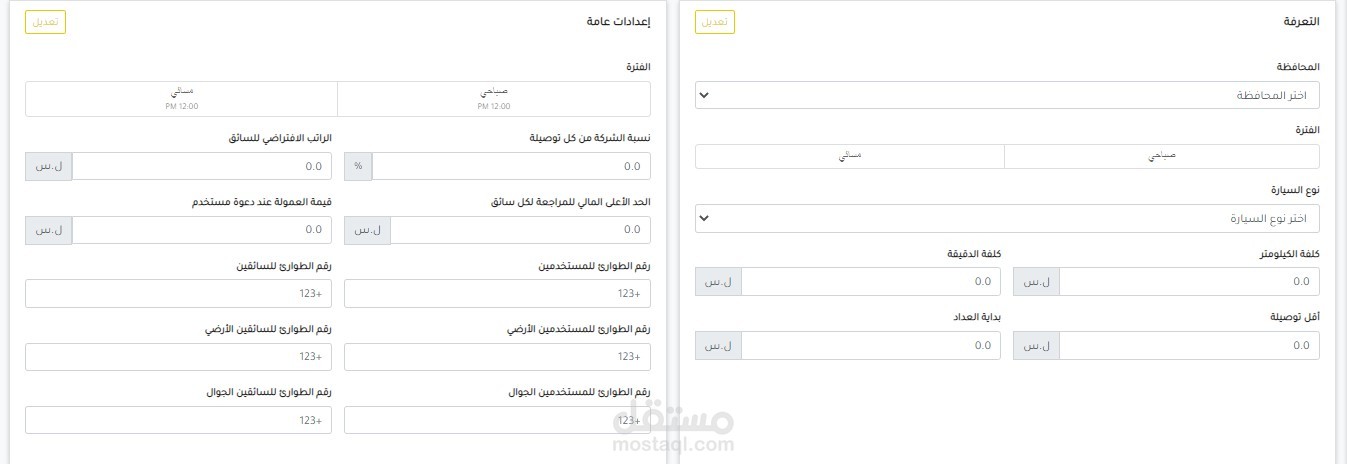 لوحة تحكم من أجل طلبيات تكاسي توصيل تتيح الميزات التالية: