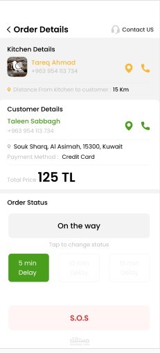 تطبيق توصيل طلبات طعام وفيه كل مايلي :