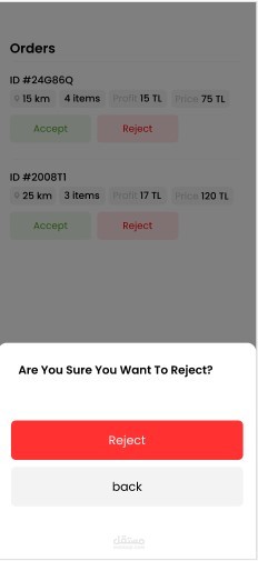 1 - عرض كل الطلبات من المطبخ أو من المنصة مع إمكانية الرفض أو القبول لأاي طلب