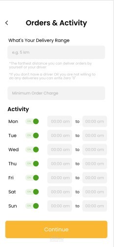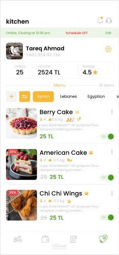 تطبيق استلام طلبات طعام من الزبائن وفيه كل مايلي :