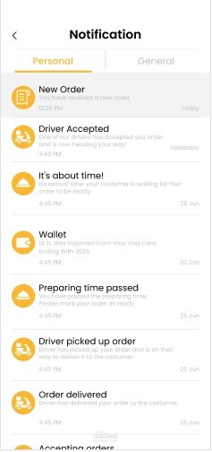 7 - تلقي إشعارات من المنصة أو من الزبائن عند استلام الطلب أو من السائق عند توصيل الطلب